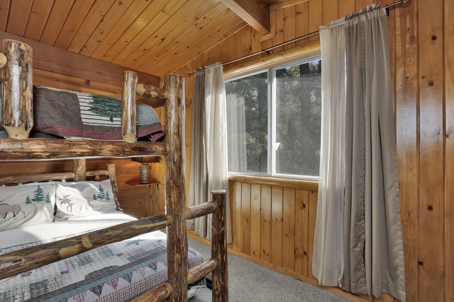 The Cave at Big Bear Lake - Adorable Mountain Retreat w/ Hot TubThe Cave at Big Bear is a cozy mountain retreat nestled in the tranquil surroundings of Big Bear City. This charming 3-bedroom, 2-bathroom home offers 1,312 square feet of comfortable living space, making it an ideal getaway for families or small groups seeking a peaceful escape. Built in 1973, the home combines classic mountain cabin charm with modern amenities to ensure a relaxing stay.The interior features a warm and inviting atmosphere, with a spacious living area perfect for gathering after a day of outdoor adventures. The fully equipped kitchen allows for convenient meal preparation, and the dining area provides a cozy space to enjoy meals together. Each bedroom is thoughtfully designed to offer restful nights, and the two bathrooms ensure ample convenience for all guests.Outside, the property boasts a large lot, providing plenty of space to enjoy the fresh mountain air. Whether you're sipping your morning coffee on the porch or stargazing in the evening, the outdoor space enhances the overall experience. Located just a short distance from hiking trails and other outdoor activities, The Cave at Big Bear offers a perfect blend of comfort and adventure for your mountain retreat.Sleeping Arrangements:Bedroom 1: Queen Bed, TV, Deck Access Bedroom 2: Single/Twin Bunk Bed, TV Bedroom 3: Queen Bed, TV Bathroom Arrangements: Full Bath - Downstairs, entry level 3/4 Bath - Upstairs -Sleeps 6-2 Cars Driveway Parking-No Pets Allowed-1,312 Square Feet-County Permit #: CESTRP-2025-01063
