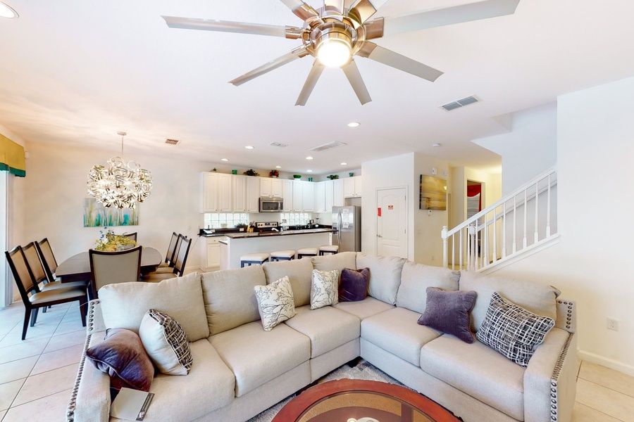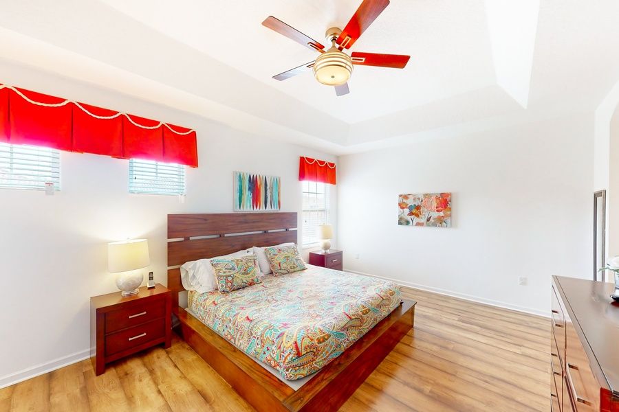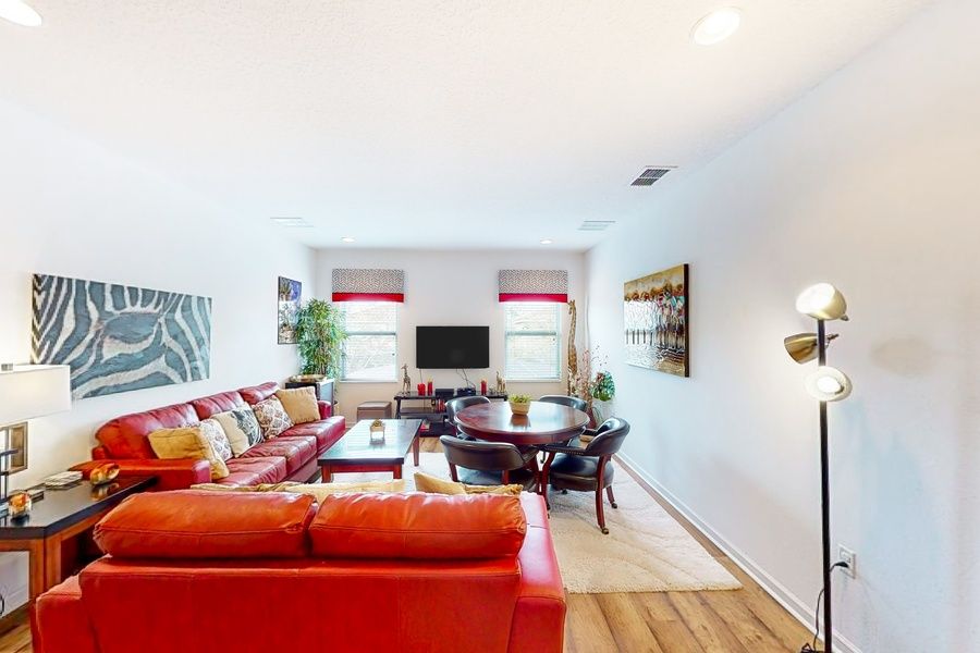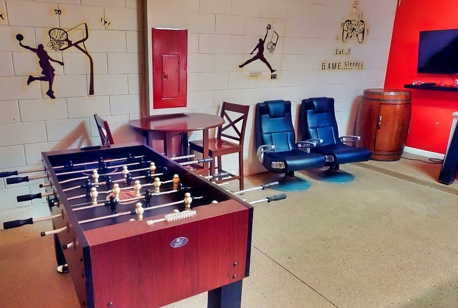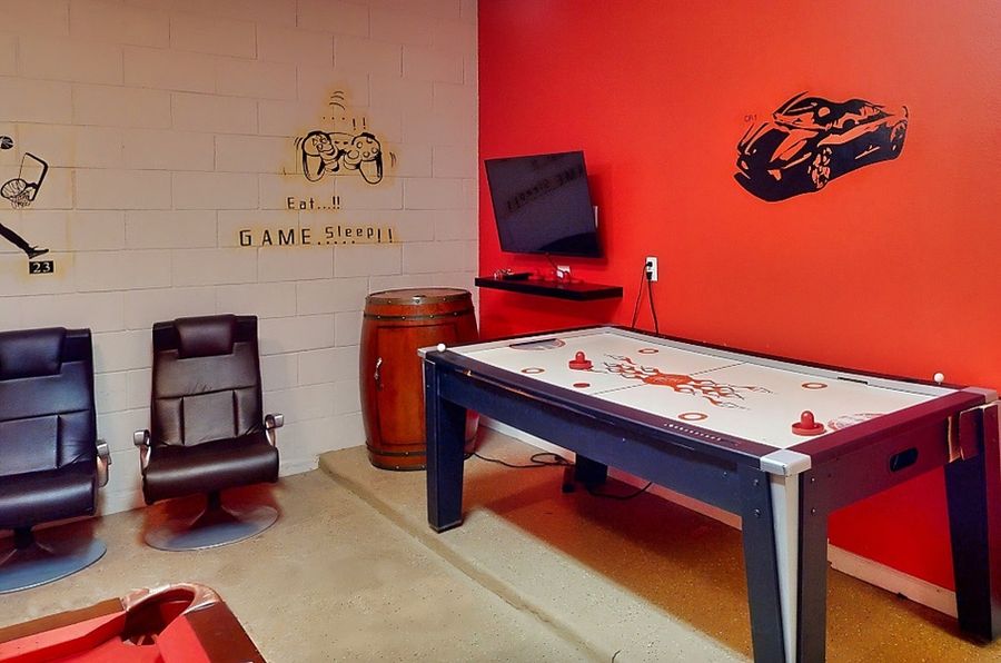 Indulge in your own slice of Central Florida paradise at this spacious escape located within Solterra Resort. Situated within minutes of championship golf and less than 10 miles from Disney, this gated, resort-style home comes offers a safe and convenient home base for a family getaway. Private home perks include a fully screened pool, a furnished lanai, and an immersive converted garage-game room complete with a pool table, foosball, air hockey, and a smart TV with twin gamer's chairs.
