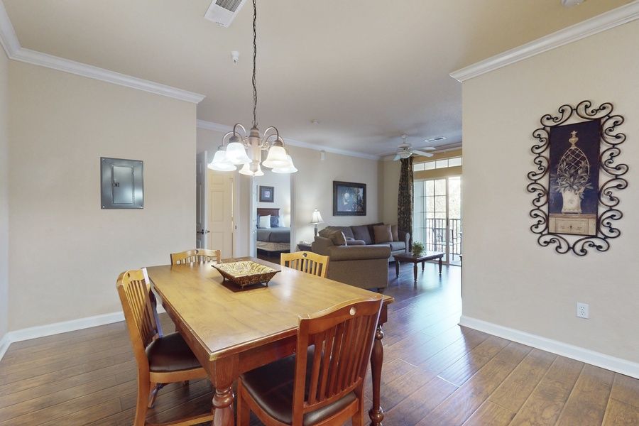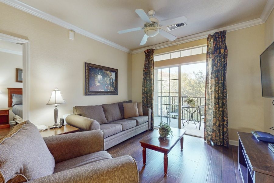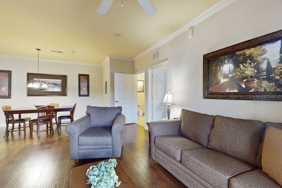 Enjoy a getaway in the heart of Central Florida golf country at this Tuscana condo. Ideally situated between award-winning golf courses at ChampionsGate and Reunion resorts, this sunny second-floor retreat also offers a fantastic location close to Disney parks and iconic Orlando attractions. On-site perks include a sparkling outdoor pool complex complete with a hot tub and lounge areas. A private, screened balcony offers a breezy perch for morning coffee and afternoon cocktails. The open living area welcomes casual downtime with family and friends, with a smart TV equipped for home entertainment. Plan and prepare family meals with ease in the well-appointed full kitchen. Additional home essentials include central air-conditioning, free WiFi, and a private washer/dryer.