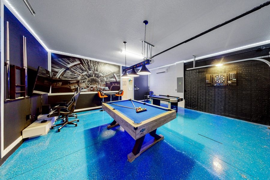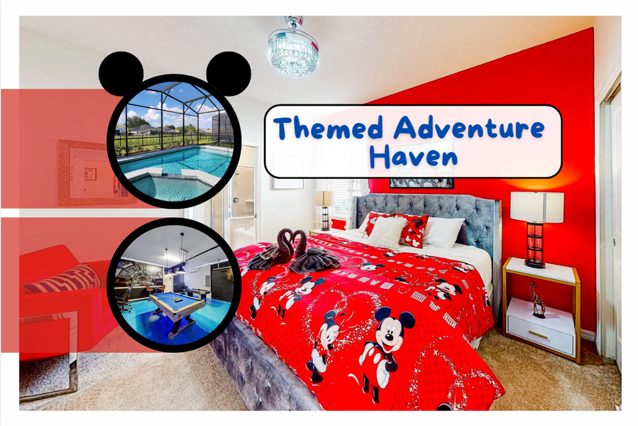A unique and memorable experience awaits, offering the vacation of a lifetime just an easy drive from Walt Disney World and Universal Studios. Not only is this lovely abode spacious and comfortable for the entire group or family with a private covered pool and pool spa, but what really makes it shine is the plethora of amenities available for everyone's entertainment. Windsor Island boasts an amazing pool area with a double water slide and a lazy river. Enjoy lounging about in the sun under a family cabana and bring snacks for a memorable day. Take the group on an adventure on the mini-golf course, or challenge each other on the basketball court, sand volleyball court, cornhole court, fitness area, or game room. Relax in the spa or hot tub, and gather around the firepit to tell stories and roast marshmallows. Upon entry, you'll be met with a bright interior and a cozy atmosphere throughout the well-appointed living area. This amazing home is full of themed rooms, upscale furnishings, and natural light, making it a space to make cherished memories that'll last a lifetime. The exciting Star Wars-themed game room boasts air hockey, billiards, darts, and video games. Relax and make yourself at home in the main living area, boasting a huge TV for streaming your favorite movies, an entrance to the lanai, and a sophisticated open-concept kitchen and dining area. A second living area upstairs is Avengers-themed, with another large TV and a foosball table for friendly competition. Find the epitome of comfort in the main bedroom that's Mickey Mouse themed, with a TV for private viewing, a luxurious en suite bathroom with a soaking tub and oversized walk-in shower, and a private entrance to the lanai. Another main suite is specifically catered to families with little guests, complete with a crib. Kids will burst with excitement with the assortment of themed bedrooms, like Encanto, Harry Potter, and Frozen. Community: Windsor Island Resort, Davenport. Located near a variety of restaurants and shopping centers. · 20-minute ride from Disney World Resort, SeaWorld, and Universal Studios (Travel times may vary due to traffic) · Parking: Parking available in designated areas in front of the house. Per resort regulations, this home accommodates up to 5 registered vehicles. Parking is available on a first-come, first-served basis and must be in designated areas only. Please adhere to these rules to avoid towing, fines, or denied entry. Important information for your arrival: • Self-check-in - Check-in: 4:00pm - Check-out: 10:00am Access code to the digital lock will be provided prior to arrival. Please note that Casago Orlando does not operate a 24-hour check-in desk. Perks at this home include: -Central A/C and WIFI -Modern, fully equipped, eat-in kitchen with new stainless appliances. Cookware and utensils are also provided for your convenience. -Iron, washer and dryer -Comfortable appointed beds with fun themed runs for children. -Private pool (heating for an additional cost of USD 35 per day). -Valet trash service (refer to specific rules in check-in instructions) -Shared community amenities like multiple pools, a lazy river, beach volleyball, outdoor basketball, Game Zone, Full gym and more. -Early Check-In / Late Check-Out: Available upon request and subject to availability. No pets allowed. We provide a small starter kit, which includes: 1 roll of toilet paper per bathroom 1 hand soap per bathroom 1 shampoo and 1 conditioner per bathroom 1 sponge in the kitchen 1 dishwasher soap in the kitchen 1 paper towel in the kitchen 1 laundry detergent 1 garbage bag Guests are welcome to bring along any extra supplies they may need, as our starter kit includes only the essentials to get you settled in. Linens and towels are provided for your convenience. However, guests are responsible for washing them during their stay, and there is a washer and dryer available in the unit. Please also note that washcloths are not included, as they are considered personal items. Rules and guidelines: POOL and SPA – We clean the pool weekly with or without guests. If you would like to be notified of the date of the inspection, please let us know so there is no inconvenience. Please do not manipulate any of the pool equipment, if you need assistance, we will be happy to send a specialist. ATTENTION: This house has no hot tub; the jets and hot tub area share the same temperature as the pool. The jets blow air, so the pool will be warm, not hot. PARTY/EVENTS - No parties or loud activities are permitted. If guests are found to have had a party without host permission which results in extra cleaning, guests will be responsible for extra cleaning charges, and in the unfortunate event of the disruptions alerting neighbors, our community patrols will contact the authorities and GUESTS WILL BE ASKED TO VACATE THE PROPERTY IMMEDIATELY Casago - Central Peninsula of Florida has engaged VacayHome to ensure this listing contains all the information you need and that it is easy for you to book via search engines & online channels. VacayHome is connected directly to the property management system used by Casago - Central Peninsula of Florida which ensures that availability & rates are up-to-date & accurate. When you book, VacayHome processes payment on behalf of Casago - Central Peninsula of Florida and a charge will appear on your statement as "VacayHome". VacayHome will send you a confirmation e-mail that contains all the information you need to prepare for your vacation including arrival instructions. VacayHome has a 24 x 7 team to assist you with any questions or concerns you may have prior to arrival. To access VacayHome, obtain the customer support telephone number or read FAQs, please click on the links at the bottom of this page.