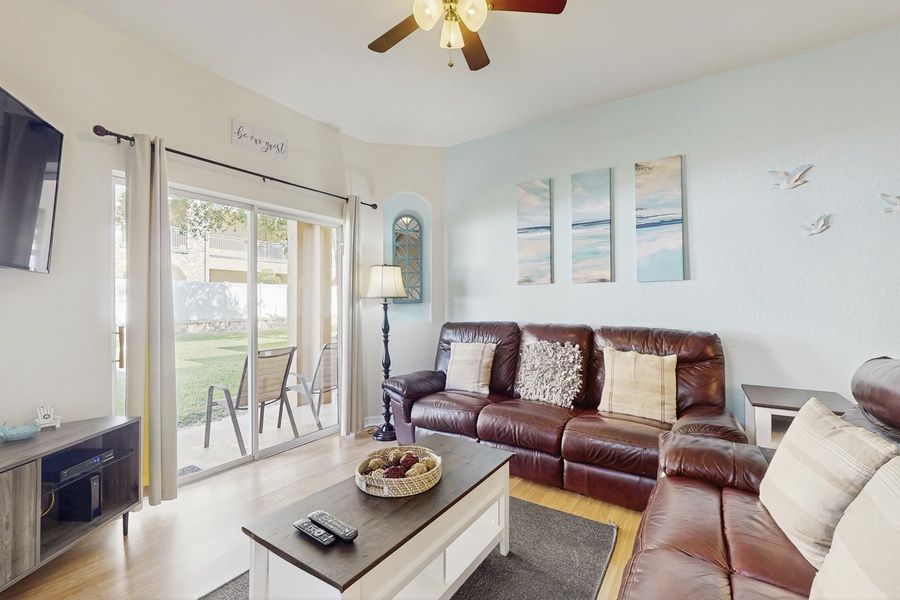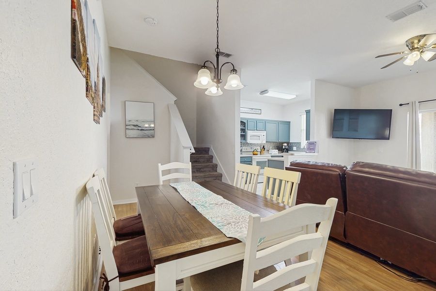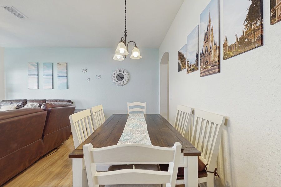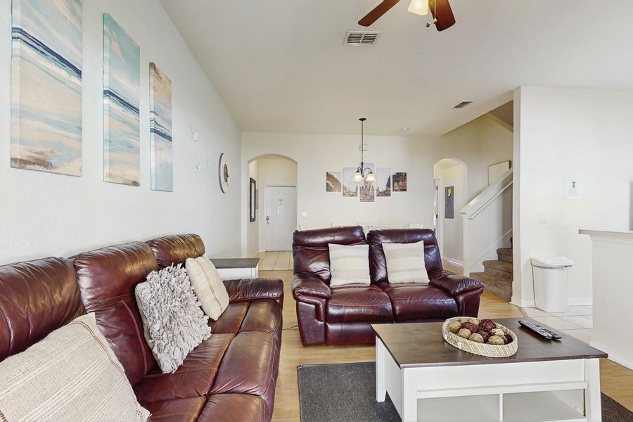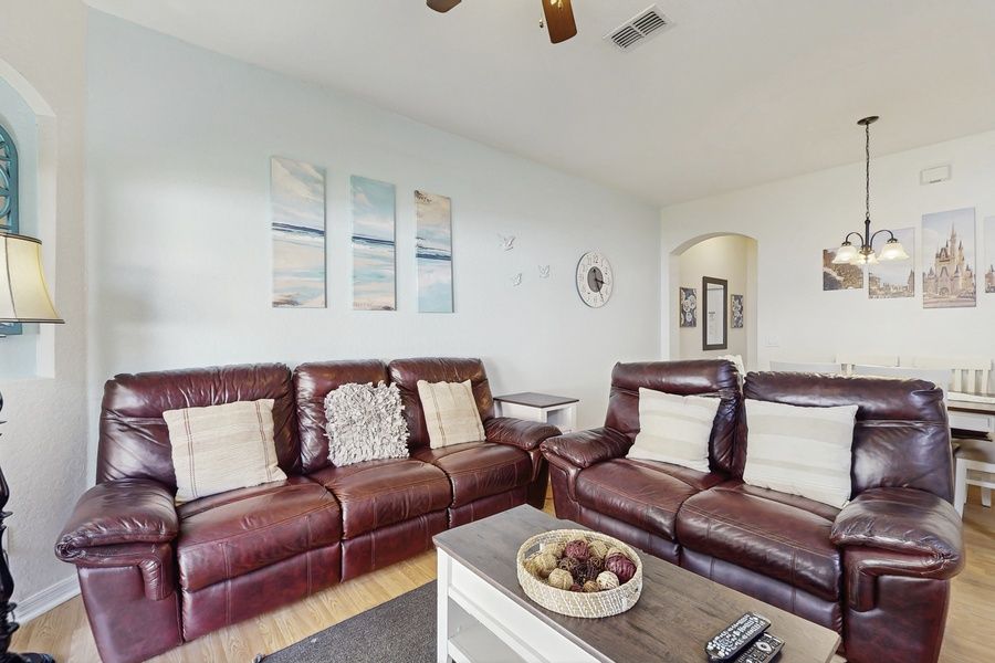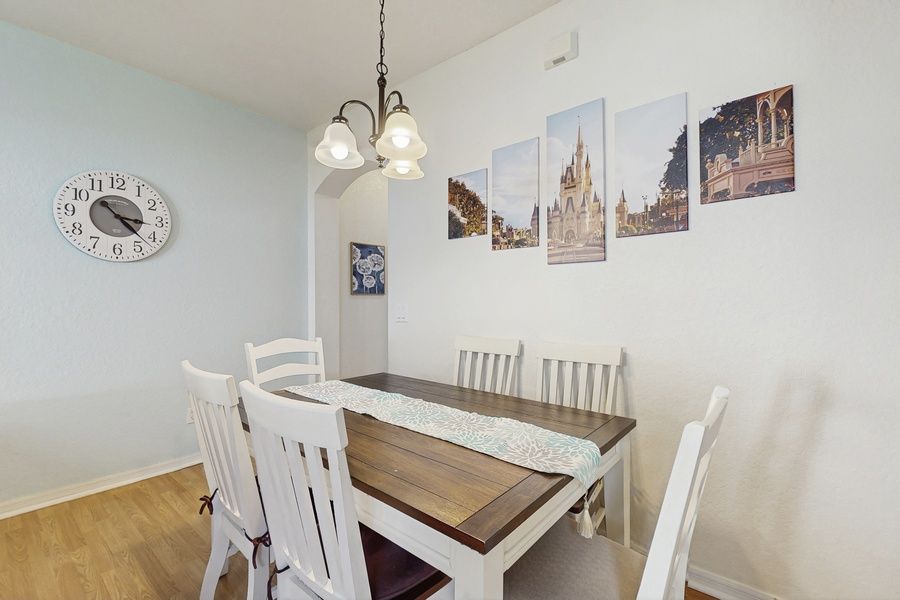 Just 10 miles west of Walt Disney World® Resort, this two-level home is waiting to make your theme park dreams come true! Step inside to find an open, spacious living area filled with lovely theme park decor, comfortable furniture, and natural light. After a day of sightseeing, you'll love coming home to spread out in the living room to watch your favorite movies and shows on the TV before cooking up a storm in the full kitchen. Serve at the dining table, then let the dishwasher take care of all the cleanup while you adjourn to the patio for a glass of wine. The kids can romp around the lawn while you use the free WiFi to research tomorrow's next adventure, and the central air-conditioning and ceiling fans will keep everything nice and cool on those hot summer afternoons! The private washer/dryer will ensure everyone has clean clothes during your stay.