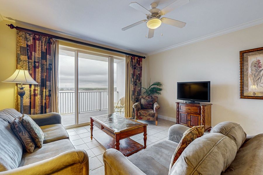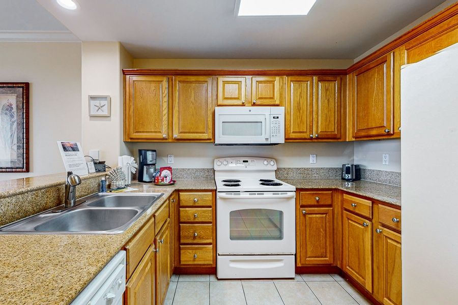 Getaway to this delightful one-bedroom condo at Blue Heron Beach Resort offers a perfect blend of comfort and stunning views, featuring a private balcony that overlooks the serene lake. Step inside to discover a spacious living area, ideal for relaxation after a day of adventure. The full kitchen is equipped with all the essential appliances, including a refrigerator, oven, microwave, and dishwasher, making it easy to prepare meals or snacks during your stay.