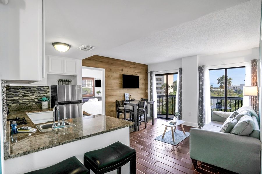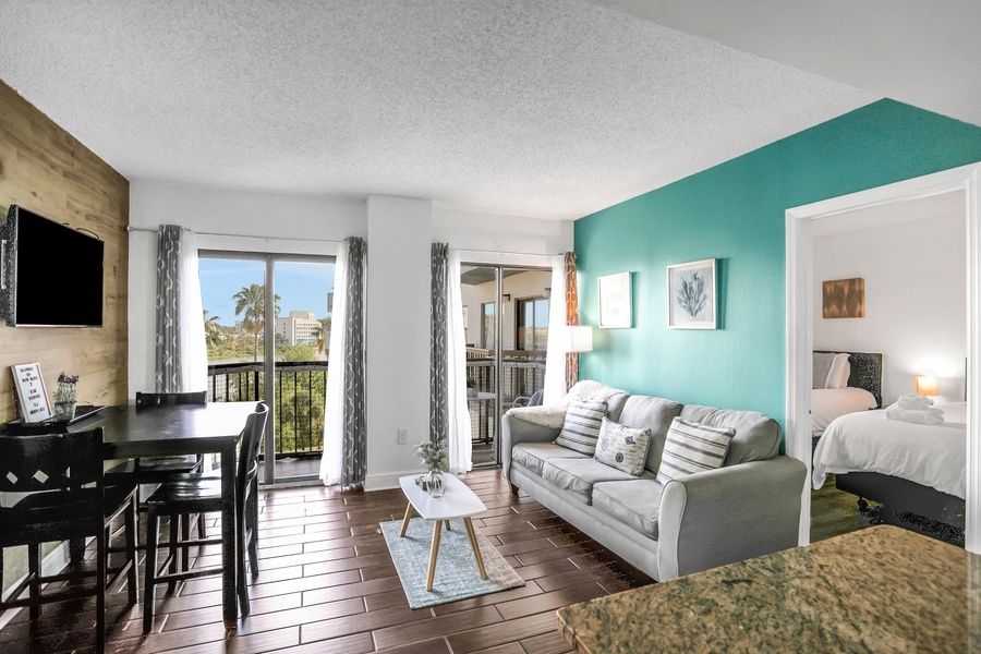 Enjoy pool and lake views from the furnished balcony of your condo - the perfect spot for morning coffee or evening cocktails. Back inside, whip up quick snacks or full-course dinners in your well-equipped kitchenette complete with a two-burner cooktop, refrigerator, coffee maker, and microwave, and then settle into the sunlit living area and watch TV. Moreover, the central air-conditioning keeps the whole space cool even on hot summer days.