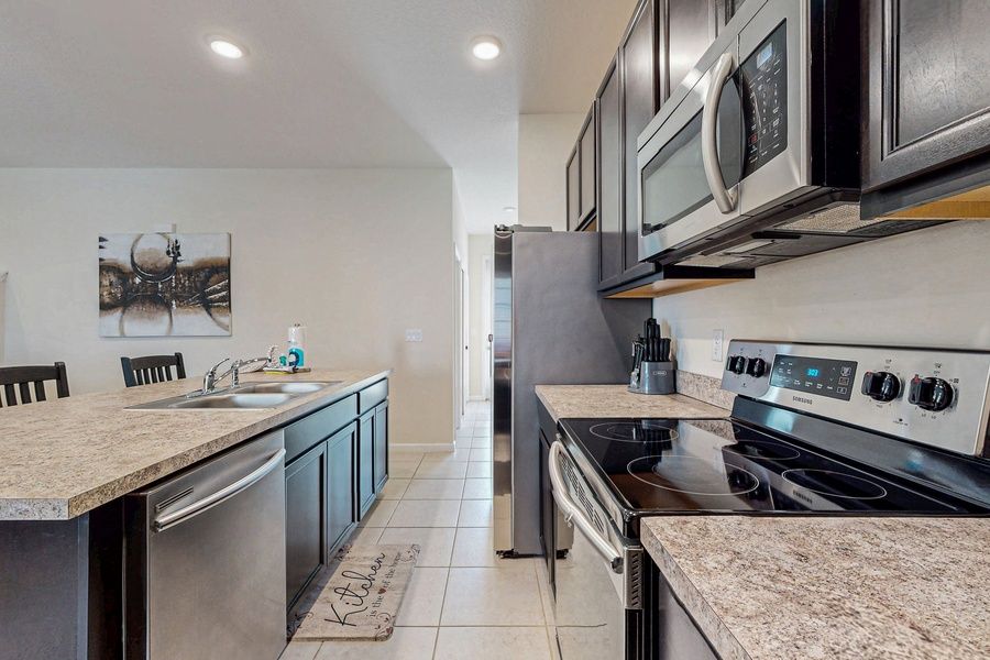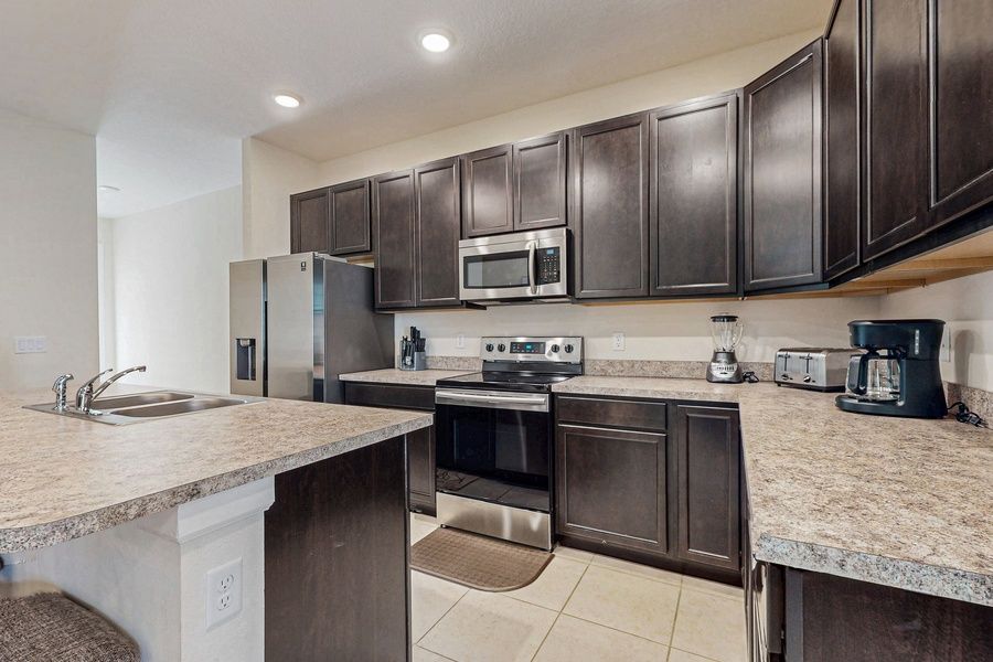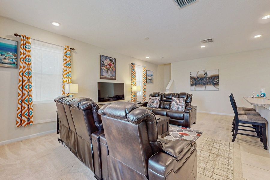 Start your mornings with coffee in the bright kitchen before heading out for a round of golf or a magical theme park adventure. In the evenings, return to your tranquil retreat to stream your favorite shows, prepare a cozy dinner, or simply relax in the inviting living room.