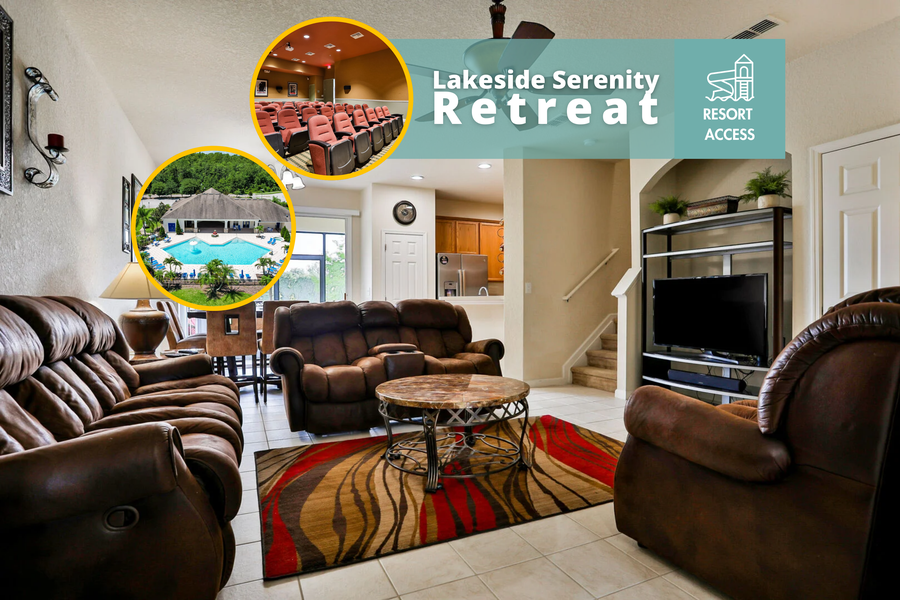 As a guest, you’ll have access to fantastic community amenities including a resort style pool, playground, sports courts, fitness center, theater room, and game room. Whether you’re relaxing by the lake or enjoying the clubhouse perks, this Kissimmee townhome offers a comfortable and well rounded Florida stay.