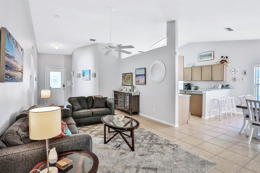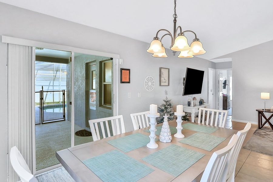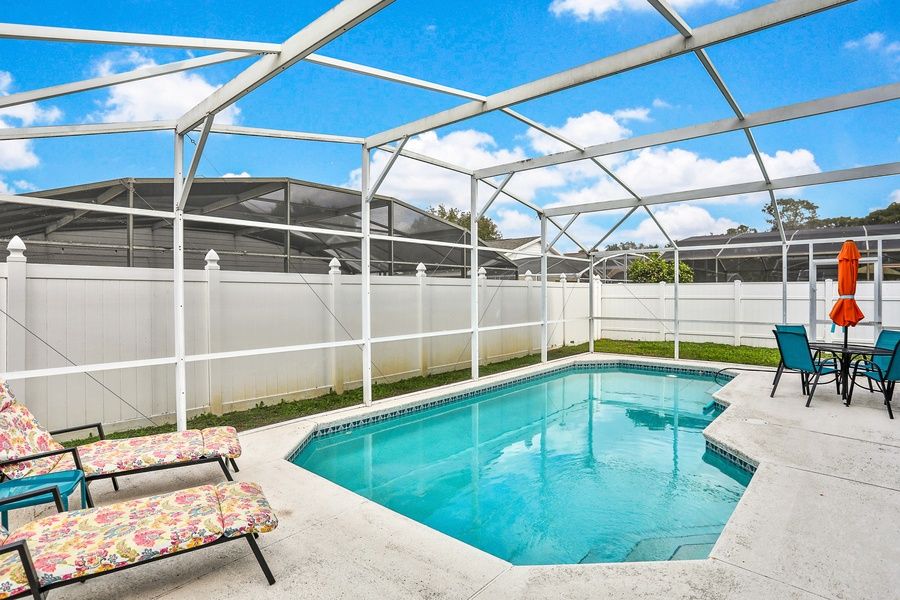 A magical adventure awaits at this family-friendly home located seven miles from Disney's Hollywood Studios. This well-appointed home offers unlimited fun, whether it's indoors or outdoors. Find yourself escaping from the sun in the private heated pool in the enclosed backyard. The entry to the pool has a pool fence, so it's totally secure for the kiddos! Dine al fresco at the outdoor dining area by the pool, or work on your tan in the beach chairs available. The air-conditioned interior is a great place to hang out as well; stream your favorite series on the large, wall-mounted Smart TV after a day full of fun at the pool. Then, when mealtime comes around, the kitchen will provide every appliance needed to whip up the most delicious meals and snacks for the group. Come back home from a tennis match and enjoy a refreshing shower while the washer/dryer keeps everyone's clothes looking their best. This home has four comfortable and well-appointed bedrooms. The main bedroom enjoys a flatscreen TV and an en suite bath with a separate tub and a standalone shower. The rest of the three bedrooms also have flatscreen TVs. There is a Mandalorian-themed bedroom that is the perfect choice for the kids. THINGS TO KNOW There is a high chair and children's dinnerware available.