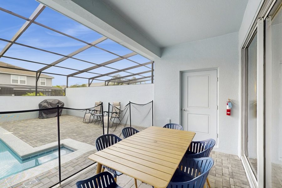 Step outside to your private patio, complete with comfortable furniture and a gas grill, perfect for al fresco dining. Dive into the heated pool or unwind in the hot tub after a day of exploring nearby attractions like theme parks, water parks, and shopping centers. For those seeking relaxation, the sauna and game room with a pool table and children's games provide endless entertainment.