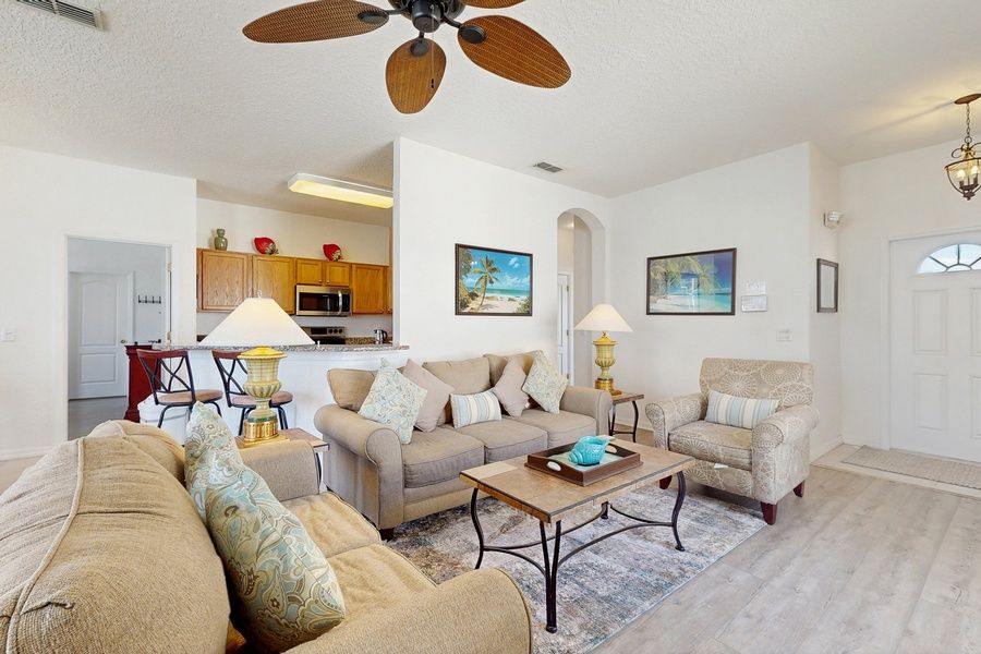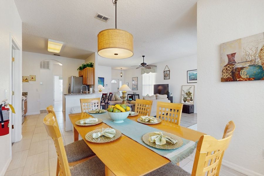 Welcome to your dream Florida getaway! This modern 4-bedroom, 2-bath home is nestled in the serene Highlands Reserve Golf Community in Davenport, offering the perfect blend of comfort and convenience. With a spacious open-plan layout, this stylish one-story home is designed to accommodate families or groups of up to 8 guests, making it an ideal retreat after a day of exploring nearby attractions.
