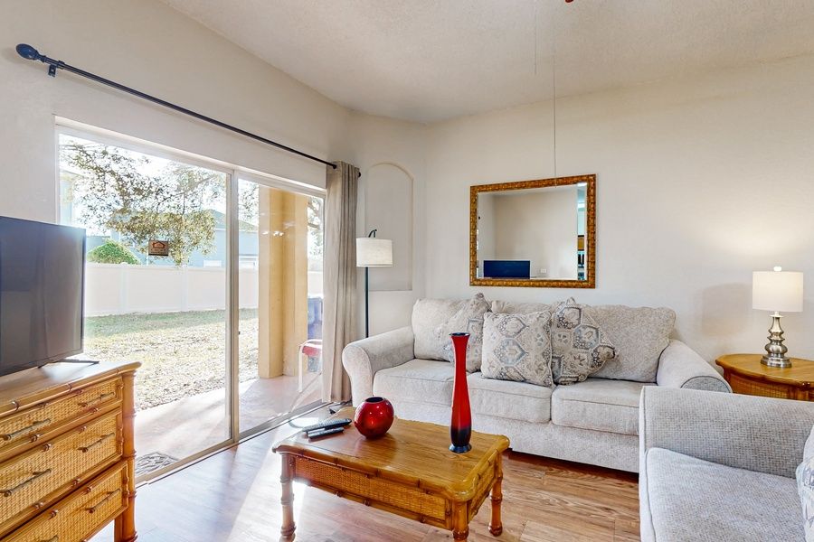 Inside, you'll find a warm and welcoming space designed for relaxation and enjoyment. The fully equipped kitchen makes meal prep a breeze, while the cozy living area is perfect for movie nights or simply unwinding after a day of adventure. Step onto the private patio to enjoy al fresco dining or soak in the Florida sunshine with your favorite drink in hand.