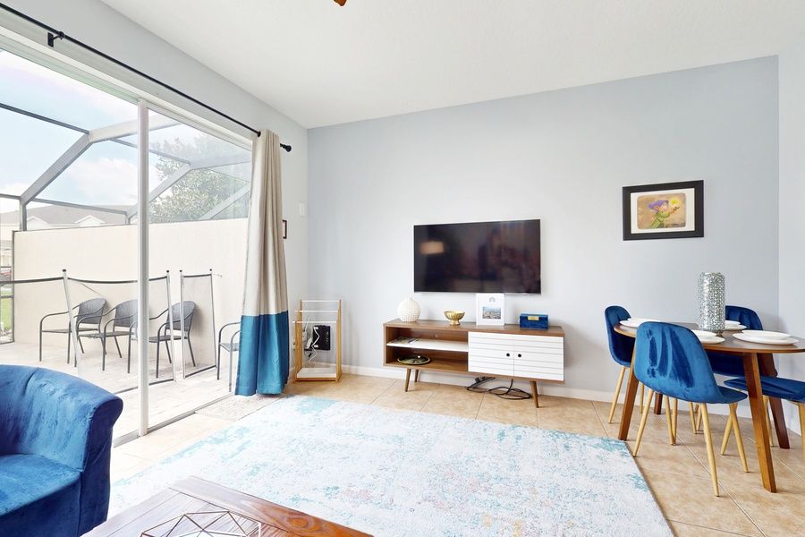 - Bright, open-concept living space with cozy seating and smart TVs