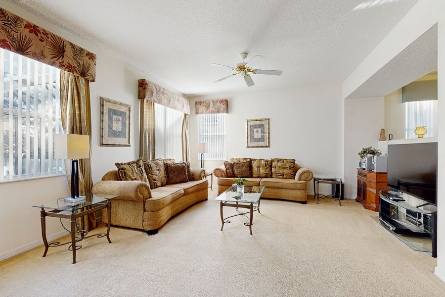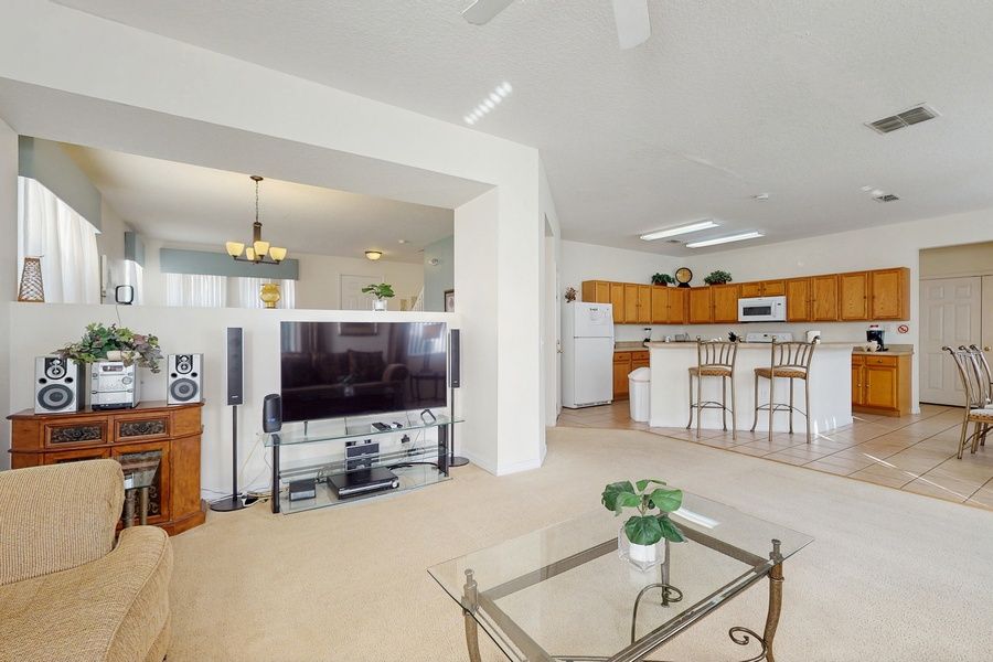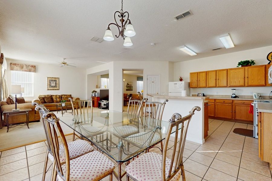 This dog-friendly home ensures that your furry friends can join in on the fun, while the comfortable sleeping arrangements, including a king bed, queen bed, and twin bed, provide ample space for everyone. With amenities like WiFi, cable, and Netflix streaming, you can unwind after a day of exploring nearby theme parks, water parks, and shopping.