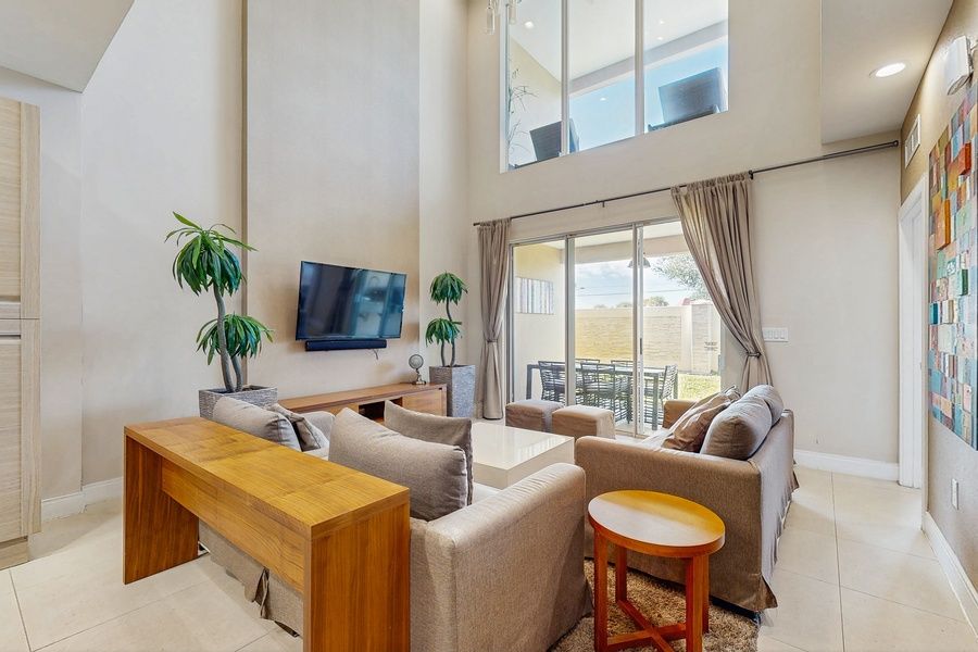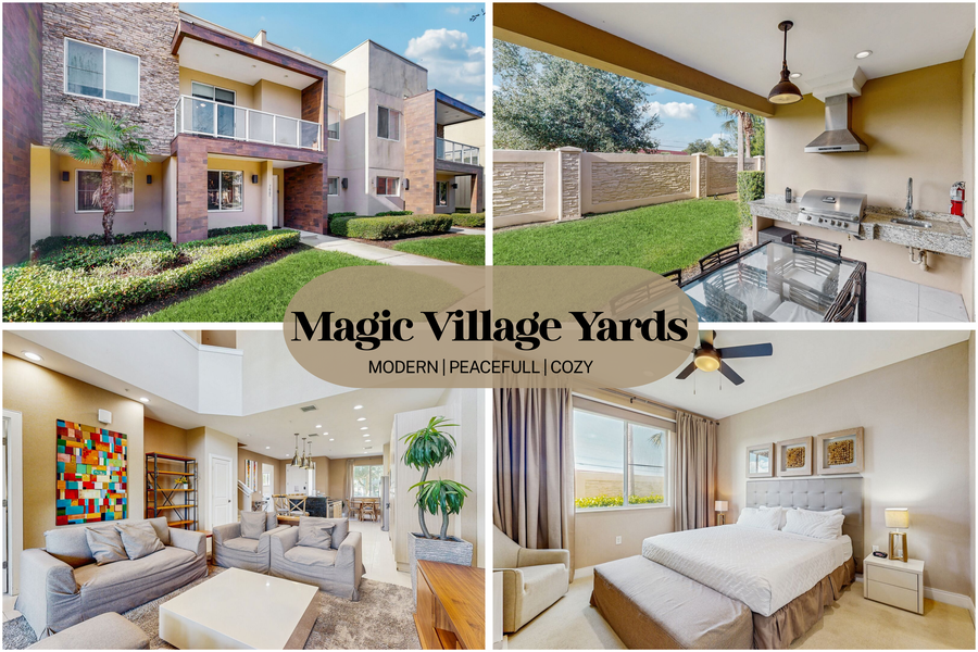 Welcome to your perfect Florida vacation retreat! Nestled in the luxurious gated community of Magic Village Resort, this stunning 4-bedroom, 4-bathroom townhouse boasts modern decor and an impressive 2,396 sq ft of stylish living space. Just five minutes from the enchanting world of Disney, this home is ideally situated for families and friends looking to experience the magic of Orlando while enjoying the comforts of a resort lifestyle. Step inside to discover an open-plan living area adorned with high ceilings and elegant finishes, creating a serene atmosphere perfect for unwinding after a day of adventure. Each of the four spacious bedrooms is designed for comfort, ensuring everyone has their own private sanctuary to relax in. With four full baths and an additional half bath, there's ample space for everyone to freshen up and prepare for the next day's excitement.