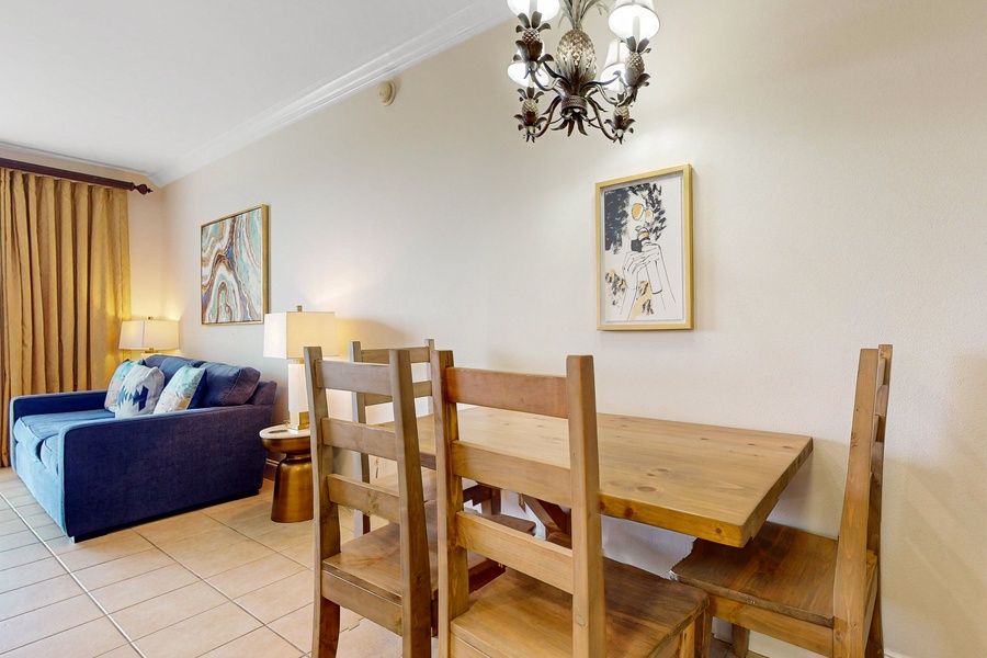 Drop the luggage and relax in the plush living room area, or enjoy the amazing views out on the patio! The living room provides a sofa bed, and the kids will love bunking out in the hallway bunks, a unique regional feature.