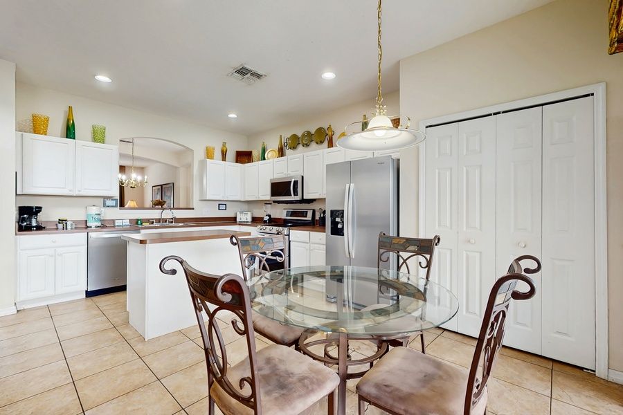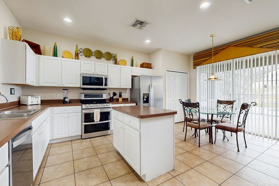 Escape to a peaceful retreat in Emerald Island Resort, a gated community surrounded by lush landscaping and a breathtaking 300 acre conservation area just minutes from Walt Disney World. This spacious 6 bedroom, 5.5 bath pool home is ideal for families and groups seeking comfort, privacy, and a true resort-style Orlando experience. Inside, you'll find bright, open living spaces designed for gathering and relaxing. The fully furnished interior features comfortable, well appointed beds, thoughtfully arranged to ensure restful sleep for every guest. A dedicated game room adds extra fun, while the private screened pool area with a raised spa creates your own backyard oasis for soaking up the Florida sunshine. As a guest, you'll enjoy access to outstanding resort amenities, including a heated community pool, hot tub, tiki bar, fitness center, sauna, tennis and sand volleyball courts, mini golf, and more. With dining, shopping, and entertainment nearby, this Emerald Island home offers the perfect balance of relaxation and adventure for an unforgettable stay. Just a short 15-minute drive from the parks (traffic permitting), our home offers 6 comfortable bedrooms, 5.5 bathrooms, and comes fully furnished to ensure a relaxing and enjoyable vacation experience. Community: Emerald Island Resort, Kissimmee, Orlando. Located near a variety of restaurants and shopping centers. Minutes from Orlando's top theme parks: Walt Disney Resort (15 min), Animal Kingdom (13 min), Epcot (16 min), Magic Kingdom (17 min) and Sea World (22 min). Travel times may vary due to traffic. Location: La Isla Dr, Kissimmee, FL, 34746, US Parking: Available in front of the house on a first-come, first-served basis. Vehicles are to be parked in designated parking areas only. Important information for your arrival: Self-check-in Check-in: 4:00pm Check-out: 10:00am Access code to the digital lock will be provided prior to arrival. Please note that Casago Orlando does not operate a 24-hour check-in desk. Perks at this 6-bedroom, 5.5-bath house include: · Central A/C and WiFi · Modern, fully equipped, eat-in kitchen with new stainless appliances. Cookware and utensils are also provided for your convenience. · Open-concept, family-friendly layout. · Iron, washer and dryer · Comfortable appointed beds · Private pool with a comfortable outdoor living area, perfect for relaxing (pool heating available for an additional USD35 USD per day) · Access to shared community amenities during your stay. · Valet trash service (refer to specific rules in check-in instructions) · Shared community amenities like a heated pool, fitness center, tennis court, walking trails and more! We provide a small starter kit, which includes: 1 roll of toilet paper per bathroom 1 hand soap per bathroom 1 shampoo and 1 conditioner per bathroom 1 sponge 1 dishwasher soap 1 paper towel in the kitchen 1 laundry detergent 1 garbage bag Guests are welcome to bring along any extra supplies they might need, as our starter kit includes only the essentials to get you settled in. Linens and towels are provided for your convenience. However, please note that guests are responsible for washing them during their stay. There is a washer and drier at the condo. Washcloths are not provided. Those are considered as personal items. Distances to know: - Walt Disney World: 15 minutes - Universal Studios: 20 minutes - Sea World: 15 minutes - Premium Outlets: 15 to 25 minutes - Orlando International Airport: 30 minutes - Super Target: 8 minutes - Publix (Supermarket): 7 minutes - Restaurants - Several within a 5-mile range - Super Walmart: 5 minutes Rules and guidelines for your comfort: POOL/SPA - The Home has a welcoming Pool so you can swing or simply relax outside all day long! Heating has an additional cost of USD35 USD per Day (service only for the whole stay). ATTENTION: This house doesn't have a hot tub, the water flows into the pool so the temperature from the jets or jacuzzi area is going to be the same. The jets are just air injected by a blower, so the pool will be warm but not hot. We clean the pool weekly with or without guests in our home. If you want to be notified of the date we will go to do the inspection, please let us know so we can avoid any inconvenience for both parties. POOL TOWELS - We provide pool towels so there is no need to bring towels from your home. We really appreciate taking care of them and leaving all of them in the home. PARKING - Vehicles are to be parked in designated parking areas only. VALET TRASH PICK-UP – Door-step collection begins after 9 AM - 7 days a week. Please bag and tie all waste – loose items are a safety hazard and will not be collected. Do not include needles or other sharp objects. Please breakdown all cardboard boxes. Casago - Central Peninsula of Florida has engaged VacayHome to ensure this listing contains all the information you need and that it is easy for you to book via search engines & online channels. VacayHome is connected directly to the property management system used by Casago - Central Peninsula of Florida which ensures that availability & rates are up-to-date & accurate. When you book, VacayHome processes payment on behalf of Casago - Central Peninsula of Florida and a charge will appear on your statement as "VacayHome". VacayHome will send you a confirmation e-mail that contains all the information you need to prepare for your vacation including arrival instructions. VacayHome has a 24 x 7 team to assist you with any questions or concerns you may have prior to arrival. To access VacayHome, obtain the customer support telephone number or read FAQs, please click on the links at the bottom of this page.