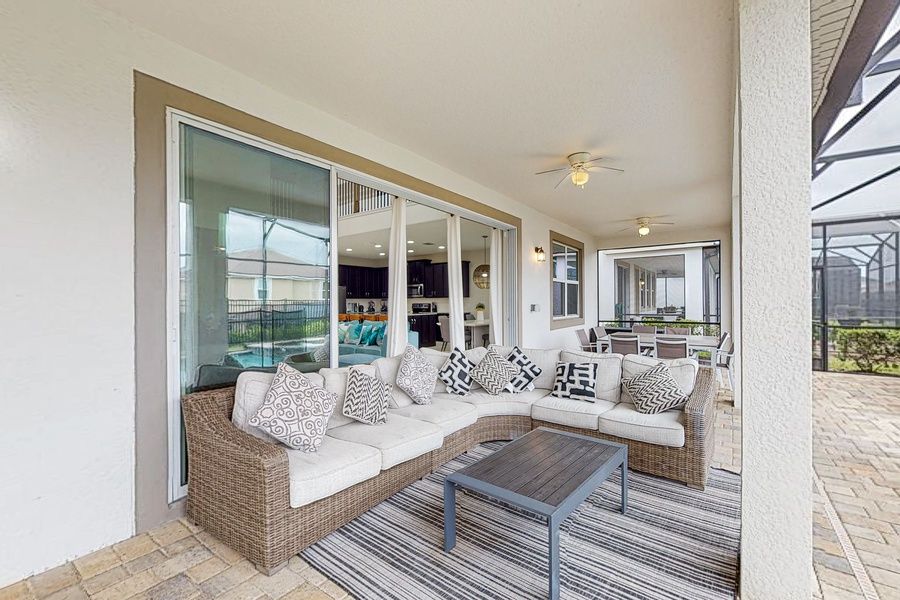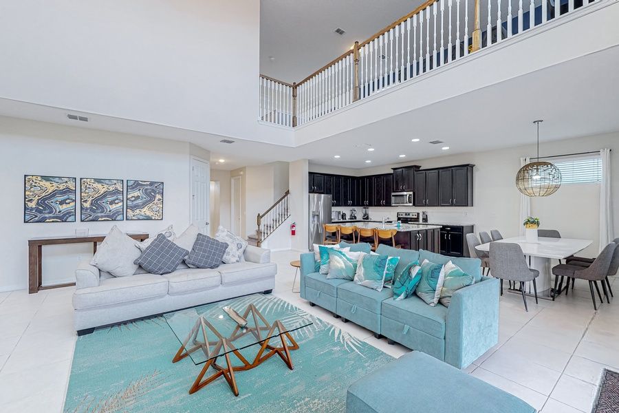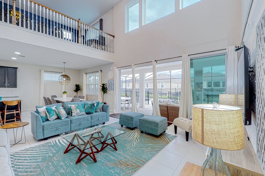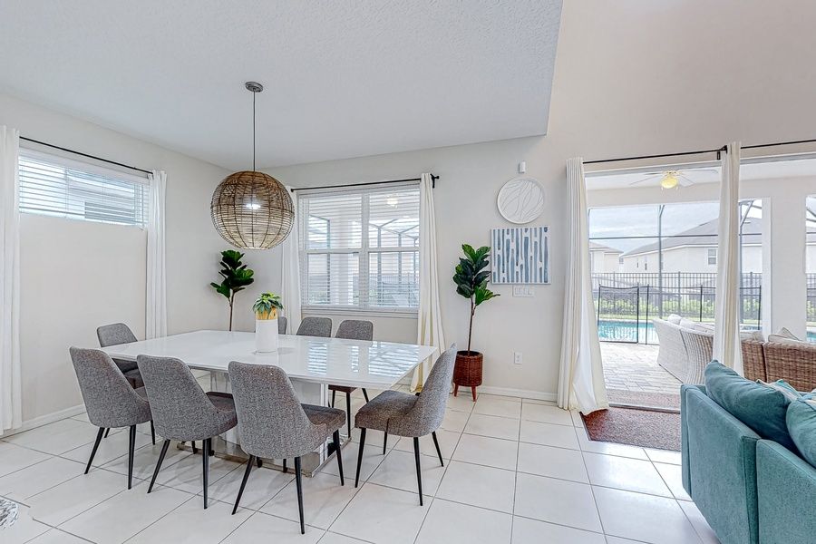 Located just six miles from the Disney parks and 15 miles from the Universal Parks, this sprawling, family-friendly home is a place of pure fun and everlasting dreams! Boasting over 4,000 sq ft of fabulous living, the interior of this home has been decorated in a tasteful Disney theme, easily enjoyed by guests of all ages. The two-story great room offers a sunlit spot to gather as a family and have a movie night around the 55-inch TV. Steps away, the full kitchen features 16 sets of dinnerware, stainless steel appliances, and granite countertops. Family-style meals can be enjoyed at the expansive breakfast bar or around the dining table - with a high chair for the littlest member of the family. When you'd prefer to dine alfresco, head for the fully-furnished lanai. The home's six bedrooms offer unique and unforgettable sleeping quarters for everyone. Showcasing two primary suites, the adults of the group will appreciate having their own en suite bathrooms, high-quality linens, and ample storage space. The kids will adore their room's Disney themes! The princess castle room will leave those who sleep there feeling as if they're royalty. The Cars room will capture the hearts of the little racers in the family. The Nemo room will captivate any who enter with its vibrant pops of color and faux bubbles. And the Toy Story indoor playground will provide hours upon hours of entertainment for the youngsters. Loved by many ages, the Fortnight game room and movie loft provides an ideal spot to sit back, game, and stream your favorite videos. Additional interior perks include a private washer/dryer, a Pack-N-Play, and central air-conditioning. On the enclosed lanai, spend sun-filled afternoons in and around the private, heated pool and pool spa. A pool security gate allows for extra protection for the kiddos and provided pool towels make your suitcase less heavy. As part of Solara Resort, appreciate having access to fantastic shared amenities! These include a heated pool with water activities, a splash pad, a wave rider surf simulator, a fitness center, a yoga studio, a game room, a playground, indoor and outdoor restaurants and bars, a coffee shop, athletic courts, and a firepit. Things to Know Check-in time: 4:00 PM Check-out time: 10:00 AM All guests shall abide by the good neighbor policy and shall not engage in illegal activity. Quiet hours are from 10:00 PM to 8:00 AM No smoking is permitted anywhere on the premises. There is an additional fee to heat the pool.