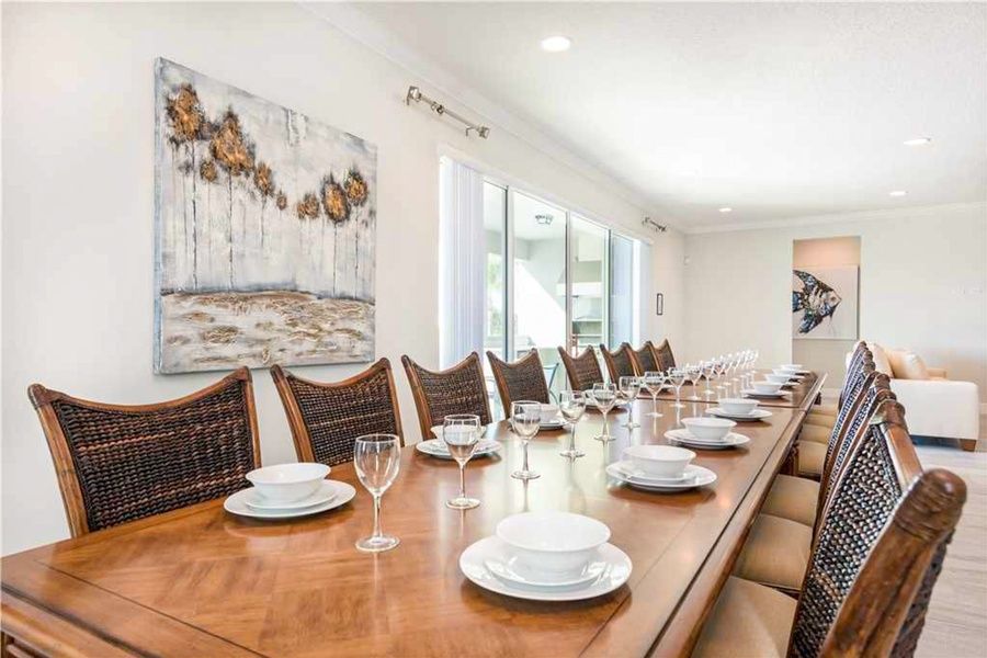 Enjoy all of the comforts of home and more at this expansive dream home perfect for a family reunion or get away with a large group of friends! With 13 spacious bedrooms featuring flatscreen TVs in each and 13 bathrooms, this retreat can accommodate up to 30 guests with ease! The interior boasts modern decor and a bright ambiance that makes everyone feel welcome the moment they step through the door. When mealtimes come around, grab some help and step into the spacious kitchen complete with two fridges, two electric ranges, and two ovens to make cooking for the whole group a breeze! If you don't want to be stuck inside cooking, take it outside and whip up some burgers and kabobs on the gas grill by the pool area. Everyone can enjoy lounging by the pool all day under the warm sun and take a dip in the water to cool off. When it is time to head inside, no one will be bored here. There is a game room featuring foosball, flatscreen TVs, a gaming system, and an arcade gaming console! Plus, a movie night is the way to go, as there is a home theater to enjoy popcorn and a family-favorite film in style!