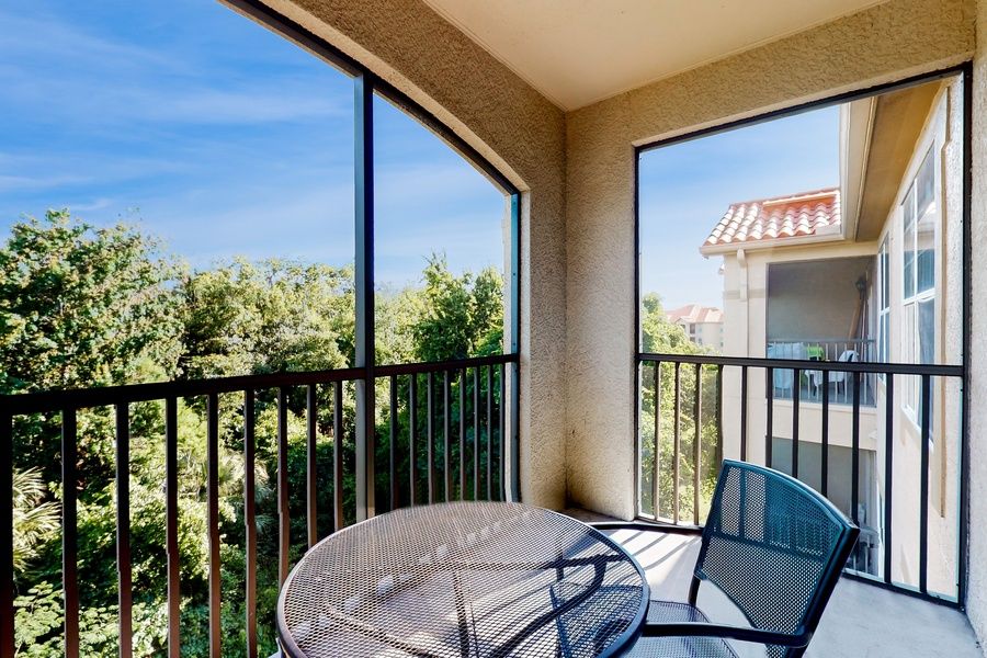 Your two-bedroom condo is thoughtfully designed with bright, stylish decor and all the comforts of home. Unwind in the living area with a Smart TV and streaming, whip up favorite meals in a fully equipped kitchen, and dine under the stars on your private balcony. The primary suite features a plush king bed and en suite bath, while the guest room with twin beds is perfect for kids or friends. A queen sleeper sofa adds even more flexibility.