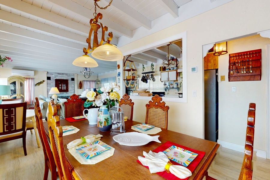 Inside, the home is designed for comfort and convenience. The well-equipped kitchen has everything you need to whip up delicious meals, while the cozy living room with a TV is perfect for movie nights. At the end of the day, retreat to the plush king and queen beds for a restful night's sleep.