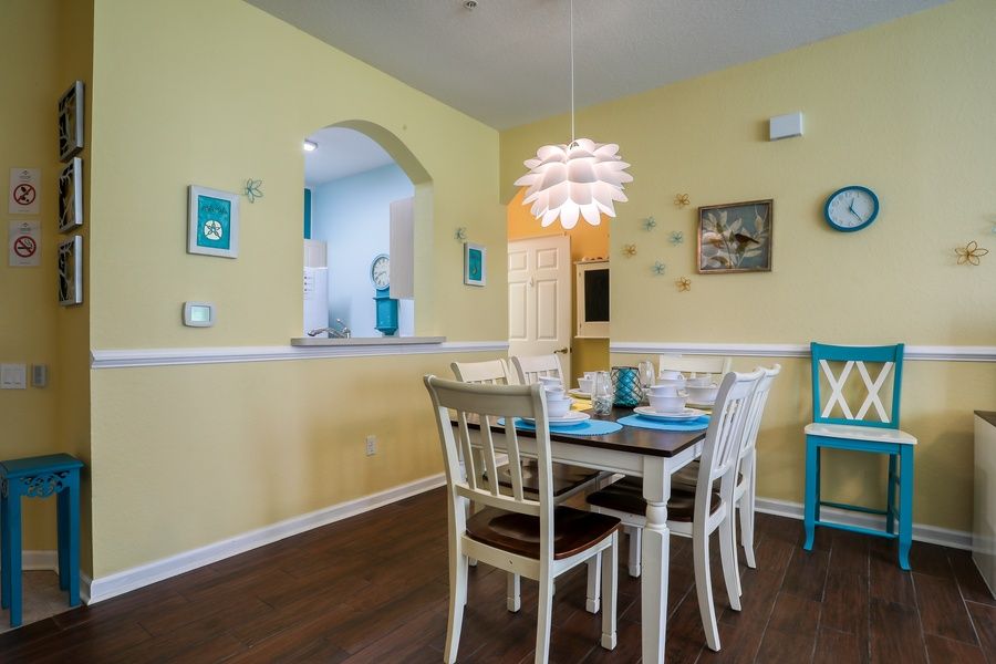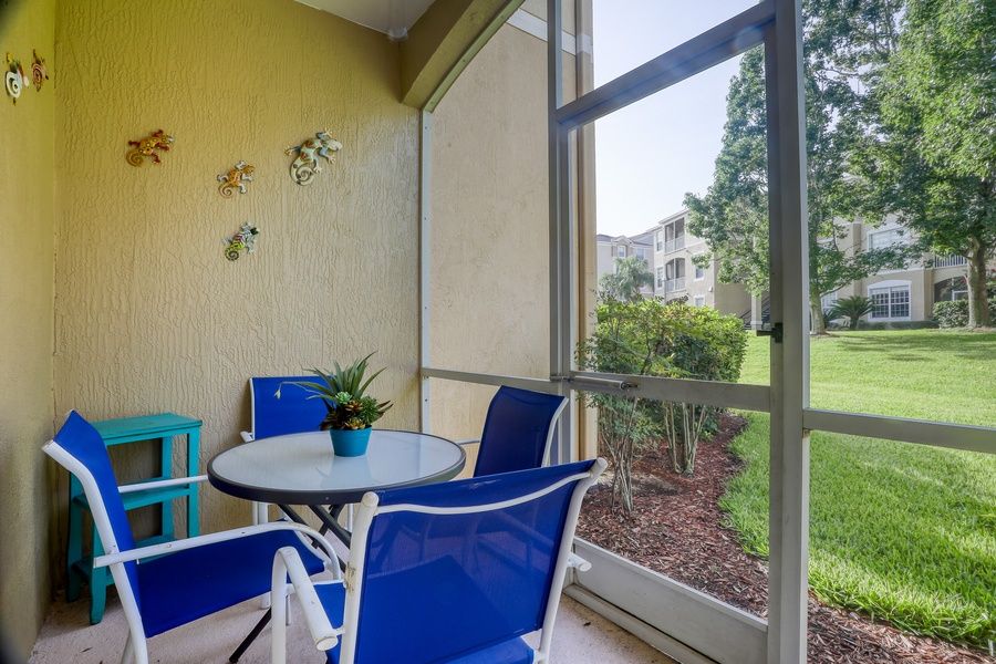 The condo comes well-appointed for modern comfort. Stretch out in the living area while streaming shows and movies on the smart TV or relax on the screened patio and kick back with a good book or a cold beverage. Plan at-home meals with ease in the full kitchen, equipped with a dishwasher for stress-free cleanup. There's seating for six at the dining table. Home essentials include central air-conditioning, free WiFi, and a private washer/dryer combo.