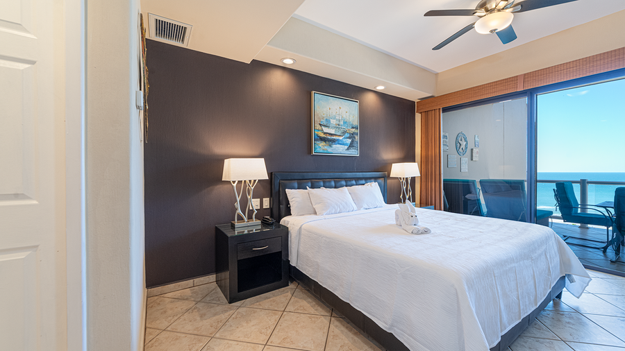 >Two bedroom, two bathroom. Bedrooms face ocean and open onto balcony.
