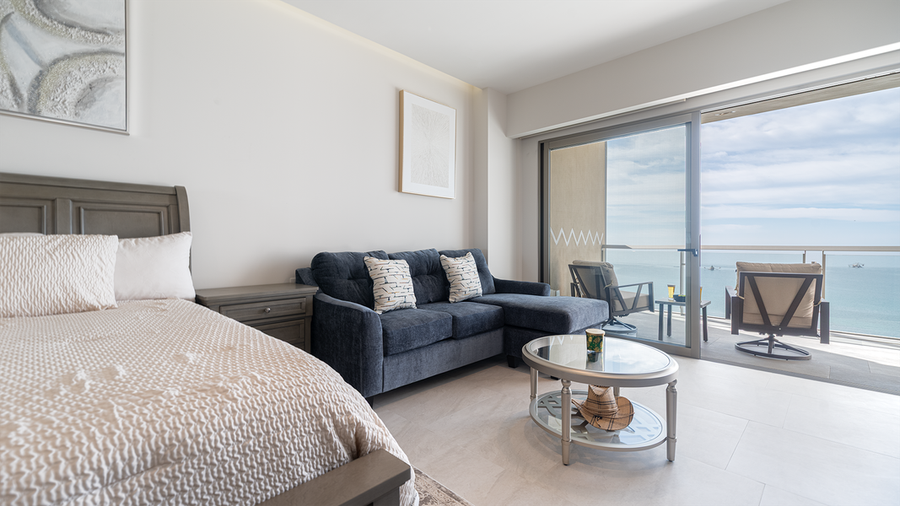Enjoy modern luxury at the brand-new Sonoran Star Resort, perfectly positioned on Sandy Beach in Rocky Point. This elegant, hotel-style studio is ideal for 2 adults and 2 children, offering comfort, style, and breathtaking views.