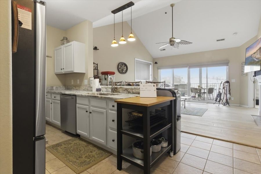 Whether you’re here for a weekend retreat or an extended stay, this condo has everything you need (including an elevator on site) for a relaxing lakeside experience, close to local restaurants, shopping, and entertainment, yet tucked away in a peaceful waterfront setting.