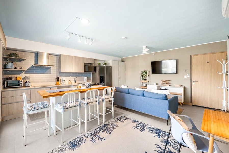 Modern condo in the heart of Jacó with beautiful mountain views and a private balcony. Bright open layout, stylish living area, and fully equipped kitchen. Just a short walk to Jacó Beach, restaurants, shops, and nightlife. Perfect for couples, families, or small groups looking for comfort, convenience, and easy access to surfing, tours, and Costa Rica's natural beauty.