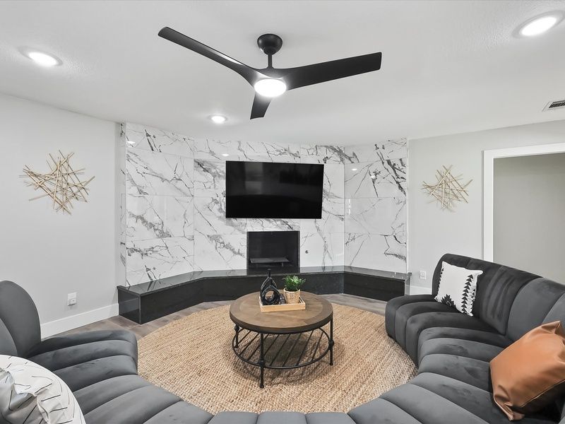 Your tropical paradise awaits! Featuring a backyard pool oasis, covered patio, and beautifully landscaped yard, this picturesque home is a southern dream!! Not to be outdone by the backyard, the interior is just as nice with a dream kitchen, sparkling bathrooms and plenty of entertaining space! 5 bedrooms (sleeps up to 13 guests) 2 private bathrooms Fully equipped chef’s kitchen Outdoor swimming pool , patio Free parking and laundry The Space Our home caters to both short term and medium term stays, making it an excellent choice for corporate housing needs. Whether you find yourself temporarily displaced from your home or require accommodations for your team during an extended project in our area, we provide a welcoming and comfortable "home away from home" experience. KITCHEN This stunning fully equipped kitchen is perfectly designed to delight any home chef! Fully equipped kitchen for all your cooking needs Black and stainless steel appliances - oven, fridge, freezer, stove, microwave, dishwasher Cooking essentials, place settings, and dining utensils DINING Home is where the bellies are filled! Dedicated dining area Dinner table with seating for 8+ guests Place settings and dining utensils Decorative artwork for a restaurant-like feel LIVING AREA Bright and spacious, this living area is perfect for gathering with family and friends! Spacious living room with overhead fan Comfortable couches, designer rug, and coffee tables Flat-screen TV and high-speed Wi-Fi Tasteful décor and furnishings BEDROOMS ‘Rise and shine’ never sounded better from the comforts of these bedrooms! We know how important the little details can be so each bedroom has been carefully curated with your comfort in mind. 5 bedrooms including the primary bedroom King beds, queen bed, bunks and single beds Bedside tables, wall art, and lamps in every room Can comfortably sleep up to 13 guests BATHROOMS Whether you prefer a bathtub or glass walk-in shower, we’ve got you covered! This home has two private bathrooms so you don’t have to worry about bathroom lineups. 2 bathrooms with high-end finishes Bathtub for relaxing bubble baths Walk-in glass door shower for a spa-like experience Extended vanity for additional bathroom space BACKYARD Don’t forget to pack your swimsuits! Nothing beats the Texas heat like a cool dip in a private pool and this place includes a private tropical oasis, just for you! This backyard has been transformed into a tropical paradise for your enjoyment! Whether you prefer to spend the afternoon splashing in the pool or relaxing on the covered patio, the choice is yours! Outdoor swimming pool Grill for a great Texan BBQ Fully fenced backyard for your privacy Please note that our spa heating element and jets are inoperable. OTHER AMENITIES Free parking is available to all guests. Feel free to park in the double car garage or on the street in front of the house. There is also a laundry room with washer and dryer if you need it. Lastly, we must stress that we do NOT allow parties or large unauthorized gatherings of any sort at our property. We are adamant about only welcoming families and groups who are looking to relax and enjoy the beautiful stunning backyard and the amenities the home has to offer. Other things to note SAFETY DEPOSIT OR DAMAGE WAIVER REQUIRED We understand that accidents can happen. To help protect the space and ensure a worry-free stay, all reservations require either a damage waiver or a safety deposit. You can choose the option that works best for you: a non-refundable damage waiver ranging from USD39 up to USD79, which covers accidental damage and normal wear and tear (no deductible) or a refundable safety deposit of USD450, which will be returned after checkout as long as no damage is found and all house rules are followed. If you’ve already purchased Damage Protection Insurance through a third-party provider, feel free to share your policy with us—we’re happy to review it and we may consider waving the requirement based on your coverage. Please note: The damage waiver does not cover damage caused by house rule violations. GUEST VERIFICATION REQUIRED To help ensure a safe and seamless experience for all guests, guest verification is required prior to confirming your reservation. This simple step is part of our commitment to providing a secure, smooth, and personalized stay for every guest. PET-FRIENDLY STAY Don’t leave your furry friends back home. Take them with you so they can enjoy a perfect vacation! We welcome house-trained pets with a non-refundable pet fee of USD150 per pet (maximum of 2 pets per stay). Please notify us in advance so we can make the necessary arrangements to ensure a comfortable stay for you and your four-legged companions. Check in and out Check in: 04:00 PM Check out: 10:00 AM Goldnest has engaged VacayHome to ensure this listing contains all the information you need and that it is easy for you to book via search engines & online channels. VacayHome is connected directly to the property management system used by Goldnest which ensures that availability & rates are up-to-date & accurate. When you book, VacayHome processes payment on behalf of Goldnest and a charge will appear on your statement as "VacayHome". VacayHome will send you a confirmation e-mail that contains all the information you need to prepare for your vacation including arrival instructions. VacayHome has a 24 x 7 team to assist you with any questions or concerns you may have prior to arrival. To access VacayHome, obtain the customer support telephone number or read FAQs, please click on the links at the bottom of this page.