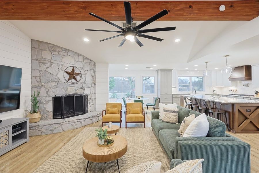 Welcome to the Lone Star State! Things are bigger and better in Texas – including vacation homes like this one! Spacious and open with an elegant interior design, this lovely ranch-style vacation home offers a fully equipped kitchen, 5 furnished bedrooms, and plenty of indoor and outdoor entertainment! 5 bedrooms (sleeps 18 guests) 3 bathrooms Fully equipped chef’s kitchen Game room with pool, foosball and air hockey Backyard with furnished patio, fire pit, soccer net and volleyball net The Space Our home caters to both short-term and medium-term stays, making it an excellent choice for corporate housing needs. Whether you find yourself temporarily displaced from your home or require accommodation for your team during an extended project in our area, we provide a welcoming and comfortable "home away from home" experience. KITCHEN This fully equipped kitchen has everything you need for all your cooking needs and more! Spacious and functional with cooking essentials and appliances included, you’ll have no shortage of inspiration to tickle your culinary senses! Fully equipped kitchen for all your cooking needs Standard appliances - oven, fridge, freezer, stove, microwave, dishwasher Plenty of cabinets and counter space Cooking basics and essentials included LIVING AREA This elegant living room has been outfitted with comfortable couches, a designer rug, and southern décor to provide you with all the comforts of home here at your home away from home! The neutral palette caters to a calming atmosphere that’s perfect for those looking for a break while the green accents and highlights add a soothing pop of color to the space. Comfortable couches, coffee table, and rug Flat-screen TV and high-speed Wi-Fi Southern décor and decorative greenery Warm, inviting atmosphere BEROOMS There will be nothing but sweet dreams from the comforts of these bedrooms! King, queen, bunk, and sofa beds available Comfy mattresses, fluffy pillows, and crisp linens Bedside tables, lamps, and accent walls Can comfortably sleep up to 18 guests GAME ROOM Be sure to try your hand at all the indoor entertainment options available! Match wits, skills, and reflexes against your friends with games of foosball and air hockey. Pay a visit to Lady Luck as you settle in around the poker table or brush up on your angles and strokes at the pool table. Poker table and pool table Foosball table and air hockey table Bar-style seating BACKYARD We take outdoor entertainment to the next level! The outdoor conversation set is perfect for your morning sips of coffee while the outdoor dining set is primed and ready for some al fresco dining! During the day, fire up those arms and legs with some friendly matches of soccer and volleyball. Finally, settle in around the fire pit as night falls and you’ll be cozy and warm all through the evening! Other things to note SAFETY DEPOSIT OR DAMAGE WAIVER REQUIRED We understand that accidents can happen. To help protect the space and ensure a worry-free stay, all reservations require either a damage waiver or a safety deposit. You can choose the option that works best for you: a non-refundable damage waiver ranging from USD39 up to USD79, which covers accidental damage and normal wear and tear (no deductible) or a refundable safety deposit of USD450, which will be returned after checkout as long as no damage is found and all house rules are followed. If you’ve already purchased Damage Protection Insurance through a third-party provider, feel free to share your policy with us—we’re happy to review it and we may consider waving the requirement based on your coverage. Please note: The damage waiver does not cover damage caused by house rule violations. GUEST VERIFICATION REQUIRED To help ensure a safe and seamless experience for all guests, guest verification is required prior to confirming your reservation. This simple step is part of our commitment to providing a secure, smooth, and personalized stay for every guest. PET-FRIENDLY STAY Don’t leave your furry friends back home. Take them with you so they can enjoy a perfect vacation! We welcome house-trained pets with a non-refundable pet fee of USD150 per pet (maximum of 2 pets per stay). Please notify us in advance so we can make the necessary arrangements to ensure a comfortable stay for you and your four-legged companions. NO PARTIES/LARGE GATHERINGS We hope you use and love our home but must remind you that only registered guests will be allowed over while you are renting our property. Please feel free to reach out if you have any questions. If you’re not sure if your stay falls under these restrictions, please consult before booking. ADDITIONAL NIGHTLY RATE FOR 6+ GUESTS Our nightly rate includes the first six guests. With each additional guest, a USD29/night fee will be applied. Check in and out Check in: 04:00 PM Check out: 10:00 AM Goldnest has engaged VacayHome to ensure this listing contains all the information you need and that it is easy for you to book via search engines & online channels. VacayHome is connected directly to the property management system used by Goldnest which ensures that availability & rates are up-to-date & accurate. When you book, VacayHome processes payment on behalf of Goldnest and a charge will appear on your statement as "VacayHome". VacayHome will send you a confirmation e-mail that contains all the information you need to prepare for your vacation including arrival instructions. VacayHome has a 24 x 7 team to assist you with any questions or concerns you may have prior to arrival. To access VacayHome, obtain the customer support telephone number or read FAQs, please click on the links at the bottom of this page.