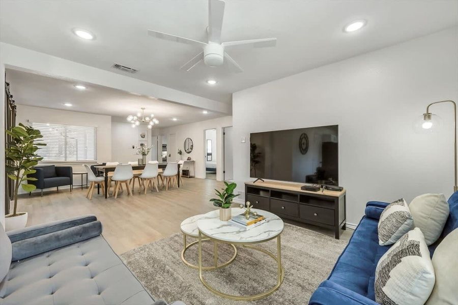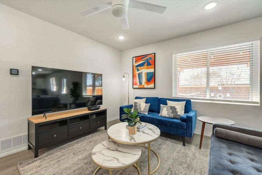 Wow-That’s what you’re going to say when you walk into this stunning masterpiece home. Recently remodeled with elegant touches, this home embodies the luxurious lifestyle right in the heart of North Richland Hills. Featuring an open concept layout, an outdoor pool, and a beautiful pergola, this 4-bedroom, 2-bathroom house was made for good times and entertaining. 4 bedrooms (sleeps 10) 2 bathrooms Fully equipped kitchen Outdoor pool, BBQ grill, and pergola Newly renovated The Space Our home caters to both short term and medium term stays, making it an excellent choice for corporate housing needs. Whether you find yourself temporarily displaced from your home or require accomodations for your team during an extended project in our area, we provide a welcoming and comfortable "home away from home" experience. KITCHEN Bright and cheerful with high-end finishes, this is the stuff dream kitchens are made of! Fully equipped kitchen for all your cooking needs Stainless steel appliances, including oven, fridge, freezer, stove, and microwave Cooking essentials, place settings, and dining utensils Granite countertops, natural sunlight, and ample counter space DINING Cheers to good food, great drinks, and even better company! Dining room table with seating for 8 Conversation nook for 2 – perfect for sipping cocktails! Stylish furniture and artwork for a restaurant-like feel LIVING AREA With an elegant air of “posh meets modern”, the open concept of this living room makes entertaining a breeze! Two couches for plenty of seating Coffee table, media console, and lighting Flat-screen TV and high-speed Wi-Fi Designer rug and homey accents BEDROOMS There won’t be anything but sweet dreams from the comforts of these bedrooms! 4 bedrooms for you to choose from King-sized bed, queen size beds and bunk beds available All rooms feature nightstands, bedside lamps, and decorative artwork BATHROOMS Sparkling clean with thoughtful touches, the bathrooms in this house are meant to be a place for you to unwind, relax, and be yourself! 2 full bathrooms Walk-in glass standing showers for easy accessibility Full-sized bathtub for relaxing bubble baths Gold accents for a high-end luxury feel BACKYARD This backyard was designed for creating lasting memories with family and friends! Enjoy a relaxing afternoon by the pool! Feel free to take a nap in the hammock or relax with a good book on the loungers provided. When you’re hungry, fire up the grill and enjoy a lovely meal under the pergola. Outdoor swimming pool Hammock and loungers Pergola and BBQ grill Fully fenced yard for your privacy ADDITIONAL AMENITIES Free parking is available to guests. There is plenty of space on the driveway as well as the two-car garage. A laundry room with a washer and a dryer is available for your use. Lastly, we must stress that we do NOT allow parties or large unauthorized gatherings of any sort at our property. We are adamant about only welcoming families and groups who are looking to relax and enjoy the beautiful stunning backyard and the amenities the home has to offer. Other things to note SAFETY DEPOSIT OR DAMAGE WAIVER REQUIRED We understand that accidents can happen. To help protect the space and ensure a worry-free stay, all reservations require either a damage waiver or a safety deposit. You can choose the option that works best for you: a non-refundable damage waiver ranging from USD39 up to USD79, which covers accidental damage and normal wear and tear (no deductible) or a refundable safety deposit of USD450, which will be returned after checkout as long as no damage is found and all house rules are followed. If you’ve already purchased Damage Protection Insurance through a third-party provider, feel free to share your policy with us—we’re happy to review it and we may consider waving the requirement based on your coverage. Please note: The damage waiver does not cover damage caused by house rule violations. GUEST VERIFICATION REQUIRED To help ensure a safe and seamless experience for all guests, guest verification is required prior to confirming your reservation. This simple step is part of our commitment to providing a secure, smooth, and personalized stay for every guest. PET-FRIENDLY STAY Don’t leave your furry friends back home. Take them with you so they can enjoy a perfect vacation! We welcome house-trained pets with a non-refundable pet fee of USD150 per pet (maximum of 2 pets per stay). Please notify us in advance so we can make the necessary arrangements to ensure a comfortable stay for you and your four-legged companions. NO PARTIES/LARGE GATHERINGS We hope you use and love our home but must remind you that only registered guests will be allowed over while you are renting our property. Please feel free to reach out if you have any questions. Check in and out Check in: 04:00 PM Check out: 10:00 AM Goldnest has engaged VacayHome to ensure this listing contains all the information you need and that it is easy for you to book via search engines & online channels. VacayHome is connected directly to the property management system used by Goldnest which ensures that availability & rates are up-to-date & accurate. When you book, VacayHome processes payment on behalf of Goldnest and a charge will appear on your statement as "VacayHome". VacayHome will send you a confirmation e-mail that contains all the information you need to prepare for your vacation including arrival instructions. VacayHome has a 24 x 7 team to assist you with any questions or concerns you may have prior to arrival. To access VacayHome, obtain the customer support telephone number or read FAQs, please click on the links at the bottom of this page.
