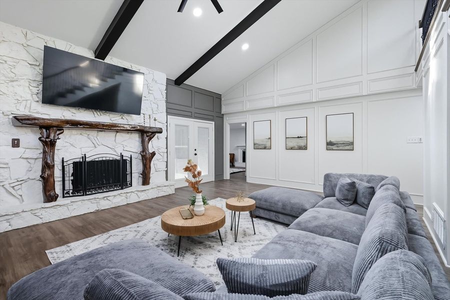 Located in sought-after Green Meadow Estates, this modern farmhouse-inspired vacation home offers tranquil privacy while only minutes from vibrant dining, shopping, and amenities! Enjoy the epitome of luxury living with a bright, open layout and luxurious upgrades throughout! With 5 bedrooms, 2.5 bathrooms, and a spacious backyard, this vacation home is perfect for groups of up to 12. 5 bedrooms (sleeps up to 12 guests) 2.5 bathrooms Fully equipped kitchen Cinema/game room Backyard with firepit and swing The Space Our home caters for both short-term and medium-term stays, making it an excellent choice for corporate housing needs. Whether you find yourself temporarily displaced from your home or require accommodation for your team during an extended project in our area, we provide a welcoming and comfortable "home away from home" experience. KITCHEN Undeniably the heart of the home, this spectacular kitchen features a center kitchen island, classic white cabinets, and top-of-the-line appliances! Fully equipped to inspire culinary creativity, this kitchen was made for socializing and entertaining! Fully equipped kitchen for all your cooking needs Stainless steel appliances - oven, fridge, freezer, stove, microwave, dishwasher Cooking essentials and utensils Kitchen island DINING Whether you’re looking to grab a quick bite in the functional dining area or plan to linger and enjoy a multi-course meal in the formal dining area, both have been equipped with place settings and décor to accompany your meals. With not one but two dining spaces, you can take your pick or switch it up during your stay! Functional dining area located next to the kitchen Formal dining area with built-in hutch Place settings, utensils, and decorative centerpiece LIVING AREA This spacious living area was designed for creating great memories with family and friends! With grandiose vaulted ceilings, French patio doors, and an oversized sectional for plenty of seating, this space has been tastefully furnished with your comfort in mind. Oversized sectional for plenty of seating Vaulted ceilings and French patio doors Flat-screen TV and high-speed Wi-Fi BEDROOMS AND BATHROOMS With 5 bedrooms to choose from, you can rest assured that each room has been thoughtfully furnished with your comfort in mind. From the plush mattresses and fluffy pillows to the nightstands and décor, you’re sure to get a good night’s rest every night of your stay! 5 bedrooms for guests to choose from King and queen beds available Can comfortably sleep up to 12 guests 2.5 bathrooms (including a shared shower) BACKYARD Located on a nearly one-acre lot, this spacious backyard offers plenty of space for you to explore, wander, and enjoy! Featuring a fire pit, a swing, and a BBQ grill, feel free to enjoy plenty of time outdoors as you soak in the warm Texas weather. BBQ grill and patio area Two-person swing Fire pit ADDITIONAL AMENITIES Free parking is available to guests. There is a carport available with 2 covered spaces as well as plenty of space on the property. A fully equipped laundry room with a washer and dryer is available for your use should you wish to refresh your clothing during your stay. Lastly, we must stress that we do NOT allow parties or large unauthorized gatherings of any sort on our property. We are adamant about only welcoming families and groups who are looking to relax and enjoy the beautiful stunning backyard and the amenities the home has to offer. Other things to note NO PARTIES/LARGE GATHERINGS We hope you use and love our home but must remind you that only registered guests will be allowed over while you are renting our property. Please feel free to reach out if you have any questions. If you’re not sure if your stay falls under these restrictions, please consult before booking. PET-FRIENDLY STAY Don’t leave your furry friends back home. Take them with you so they can enjoy a perfect vacation! We welcome house-trained pets with a non-refundable pet fee of USD150 per pet (maximum of 2 pets per stay). Please notify us in advance so we can make the necessary arrangements to ensure a comfortable stay for you and your four-legged companions. ADDITIONAL NIGHTLY RATE FOR 6+ GUESTS Our nightly rate includes the first six guests. With each additional guest, a USD29/night fee will be applied. FIREPLACE NOTE Please note that our fireplace is inoperable at this moment. We apologize for the inconvenience. ENTERTAINMENT All our smart TVs are equipped with streaming apps like Netflix, Amazon, and YouTube. Guests are welcome to login with personal accounts. Goldnest has engaged VacayHome to ensure this listing contains all the information you need and that it is easy for you to book via search engines & online channels. VacayHome is connected directly to the property management system used by Goldnest which ensures that availability & rates are up-to-date & accurate. When you book, VacayHome processes payment on behalf of Goldnest and a charge will appear on your statement as "VacayHome". VacayHome will send you a confirmation e-mail that contains all the information you need to prepare for your vacation including arrival instructions. VacayHome has a 24 x 7 team to assist you with any questions or concerns you may have prior to arrival. To access VacayHome, obtain the customer support telephone number or read FAQs, please click on the links at the bottom of this page.