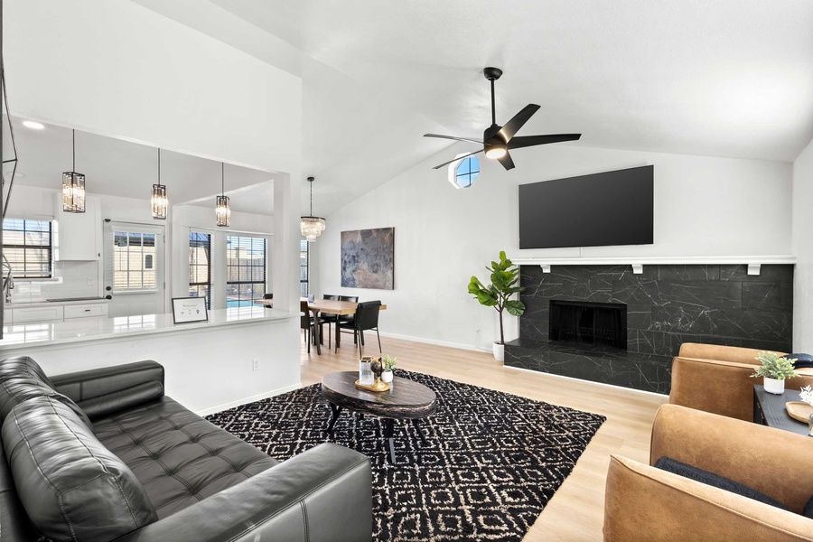 This is one southern oasis you won’t want to miss out on! Featuring a backyard paradise with an outdoor swimming pool as well as a patio with a BBQ grill, this place takes vacation house living to the next level! With a fully equipped chef’s kitchen, 3 bedrooms, and 2 bathrooms, this stunning, beautiful place is perfect for accommodating groups of up to 8. 3 bedrooms (sleeps 8 guests) 2 bathrooms Fully equipped chef’s kitchen Backyard a patio and BBQ grill Outdoor swimming pool The Space Our home caters for both short-term and medium-term stays, making it an excellent choice for corporate housing needs. Whether you find yourself temporarily displaced from your home or require accommodation for your team during an extended project in our area, we provide a welcoming and comfortable "home away from home" experience. KITCHEN This white kitchen features a breakfast bar with stool seating, a coffee bar, and all your necessary appliances! Fully equipped with cooking essentials, this is the perfect place to unleash your culinary prowess! Fully equipped kitchen for all your cooking needs Stainless steel appliances, including fridge, freezer, stove, and oven Breakfast bar with stool seating All basic cooking essentials included DINING ROOM The open-concept layout makes it easy to socialize all the way from food prep to meal time. With a beautiful wooden table, a chandelier, and lovely restaurant-like accents, we’ve brought the dining scene right to you. Dinner table with seat settings for 6+ Place settings and dining utensils Restaurant-like environment LIVING ROOM The comfortable couches, rug, and coffee tables have been carefully selected to cultivate a warm, inviting space, so sit back, relax, and enjoy your stay! Comfortable couches with plenty of seating Rug, artwork, and coffee tables Flat-screen TV and high-speed Wi-Fi BEDROOMS With 3 bedrooms to choose from, be sure to check them all out before settling in as they offer a variety of furnishings. 3 furnished bedrooms to choose from Plush mattresses, comfortable sheets, and fluffy pillows Bedside tables, TVs, and artwork Can comfortably sleep up to 8 guests BACKYARD This backyard is the perfect retreat for those looking to relax and unwind! Nothing beats the Texas heat like a cool, refreshing dip in the pool. If you’ve worked up an appetite from your fun in the sun, toss some of your favorite proteins onto the BBQ grill for a tasty, alfresco meal on the patio! Outdoor swimming pool Furnished patio with BBQ grill Fully fenced yard for your privacy OTHER AMENITIES Free parking is available to all guests. The laundry room is fully equipped with a washer and dryer should you need to refresh your clothing during your stay. Lastly, we must stress that we do NOT allow parties or large unauthorized gatherings of any sort on our property. We are adamant about only welcoming families and groups who are looking to relax and enjoy the beautiful stunning backyard and the amenities the home has to offer. Other things to note NO PARTIES/LARGE GATHERINGS We hope you use and love our home but must remind you that only registered guests will be allowed over while you are renting our property. Please feel free to reach out if you have any questions. If you’re not sure if your stay falls under these restrictions, please consult before booking. SAFETY DEPOSIT OR DAMAGE WAIVER REQUIRED We understand that accidents can happen. To help protect the space and ensure a worry-free stay, all reservations require either a damage waiver or a safety deposit. You can choose the option that works best for you: a non-refundable damage waiver ranging from USD39 up to USD79, which covers accidental damage and normal wear and tear (no deductible) or a refundable safety deposit of USD450, which will be returned after checkout as long as no damage is found and all house rules are followed. If you’ve already purchased Damage Protection Insurance through a third-party provider, feel free to share your policy with us—we’re happy to review it and we may consider waiving the requirement based on your coverage. Please note: The damage waiver does not cover damage caused by house rule violations. GUEST VERIFICATION REQUIRED To help ensure a safe and seamless experience for all guests, guest verification is required prior to confirming your reservation. This simple step is part of our commitment to providing a secure, smooth, and personalized stay for every guest. PET-FRIENDLY STAY Don’t leave your furry friends back home. Take them with you so they can enjoy a perfect vacation! We welcome house-trained pets with a non-refundable pet fee of USD150 per pet (maximum of 2 pets per stay). Please notify us in advance so we can make the necessary arrangements to ensure a comfortable stay for you and your four-legged companions. ADDITIONAL NIGHTLY RATE FOR 6+ GUESTS Our nightly rate includes the first six guests. With each additional guest, a USD29/night fee will be applied. Goldnest has engaged VacayHome to ensure this listing contains all the information you need and that it is easy for you to book via search engines & online channels. VacayHome is connected directly to the property management system used by Goldnest which ensures that availability & rates are up-to-date & accurate. When you book, VacayHome processes payment on behalf of Goldnest and a charge will appear on your statement as "VacayHome". VacayHome will send you a confirmation e-mail that contains all the information you need to prepare for your vacation including arrival instructions. VacayHome has a 24 x 7 team to assist you with any questions or concerns you may have prior to arrival. To access VacayHome, obtain the customer support telephone number or read FAQs, please click on the links at the bottom of this page.