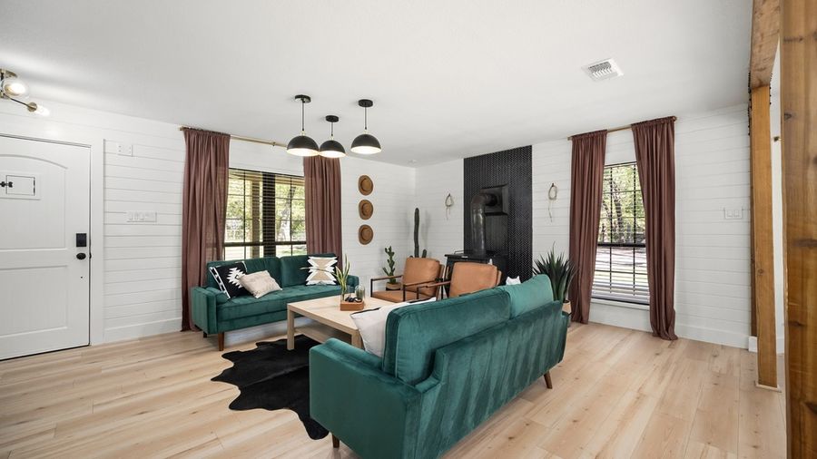 You’re going to love this place! This remodeled country house has everything you could desire with luxury touches both inside and out! Immerse yourself in the modern farmhouse interior, paired beautifully with the backyard’s fire pit, hot tub, and patio. Everything looks like it waltzed off the set of HGTV’s latest show – and right into your vacation life! 4 bedrooms (sleeps 13) 2.5 bathrooms Fully equipped kitchen Patio, fire pit, hot tub Tranquil country living Spacious backyard with pond The Space Our home caters to both short-term and medium-term stays, making it an excellent choice for corporate housing needs. Whether you find yourself temporarily displaced from your home or require accommodation for your team during an extended project in our area, we provide a welcoming and comfortable "home away from home" experience. KITCHEN Fully equipped to serve all your cooking needs, this kitchen was designed to allow your culinary dreams to soar! This galley-style kitchen features stainless steel appliances and plenty of counter space for easy meal prep. Fully equipped kitchen for all your cooking needs Stainless steel appliances, including fridge, freezer, stove, oven, dishwasher, and microwave Cooking essentials including pots, pans, utensils, etc. Plenty of counter space and cabinets DINING There are plenty of chairs to accommodate large groups between the dinner table – which seats up to 8 guests – and the kitchen island’s 4 stools! Designed to wheat your appetite, this space features modern lighting, a classic wooden dinner table, and sleek chairs to create a restaurant-like atmosphere. Dining table with seat settings for 8 guests Kitchen island seating for 4 guests View of the backyard Place settings and dining utensils LIVING ROOM Settle into this exquisite living room and be transported to a world of comfort and luxury. With its stylish shiplap walls and inviting atmosphere, this space is the perfect place to unwind and relax with your loved ones. Couches and sofas for plenty of seating Coffee table, designer rug, and décor Large flat-screen TV and high-speed Wi-Fi Warm, inviting atmosphere for relaxing with a fireplace BEDROOMS The plush, comfortable beds take center stage, adorned with clean, crisp linens that invite you to sink in and drift off to sleep. Decorated with southern décor that’s true to our roots, you'll feel yourself drifting off to sleep with ease as you settle into these beds. 4 bedrooms furnished with your comfort in mind Master ensuite with a king-sized bed, sitting area, and ensuite bathroom 3 additional bedrooms with queen, bunk, and sofa beds for plenty of sleeping space Can comfortably sleep up to 13 guests BATHROOM Equipped with essential toiletries so you don’t have to worry about the little things, we pride ourselves on the impeccable cleanliness and spa-like environment of our bathrooms. 2.5 private bathrooms Master ensuite bathroom with dual sinks, glass walk-in shower, and soaker tub Essential toiletries included such as towels, soap, toilet paper, etc BACKYARD Breathe in the fresh country air as you go for a stroll through this massive backyard. Immerse yourself on walks as you admire the scenic pond and enjoy the company of the trees. When you’re finished exploring, grab a drink and settle into the patio or around the fire pit. For the ultimate rest-and-relaxation experience, enjoy a soothing soak in the hot tub. Massive backyard with trees Scenic pond feature Patio area with outdoor furniture Fire pit and loungers OTHER AMENITIES Free parking is available to all guests. There is plenty of space on the property for vehicles. The laundry room is fully equipped with a washer and dryer should you need to refresh your clothing during your stay Lastly, we must stress that we do NOT allow parties or large unauthorized gatherings of any sort at our property. We are adamant about only welcoming families and groups who are looking to relax and enjoy the beautiful stunning backyard and the amenities the home has to offer. Other things to note GUEST VERIFICATION REQUIRED To help ensure a safe and seamless experience for all guests, guest verification is required prior to confirming your reservation. This simple step is part of our commitment to providing a secure, smooth, and personalized stay for every guest. PET-FRIENDLY STAY Don’t leave your furry friends back home. Take them with you so they can enjoy a perfect vacation! We welcome house-trained pets with a non-refundable pet fee of USD150 per pet (maximum of 2 pets per stay). Please notify us in advance so we can make the necessary arrangements to ensure a comfortable stay for you and your four-legged companions. NO PARTIES/LARGE GATHERINGS We hope you use and love our home but must remind you that only registered guests will be allowed over while you are renting our property. Please feel free to reach out if you have any questions. If you’re not sure if your stay falls under these restrictions Goldnest has engaged VacayHome to ensure this listing contains all the information you need and that it is easy for you to book via search engines & online channels. VacayHome is connected directly to the property management system used by Goldnest which ensures that availability & rates are up-to-date & accurate. When you book, VacayHome processes payment on behalf of Goldnest and a charge will appear on your statement as "VacayHome". VacayHome will send you a confirmation e-mail that contains all the information you need to prepare for your vacation including arrival instructions. VacayHome has a 24 x 7 team to assist you with any questions or concerns you may have prior to arrival. To access VacayHome, obtain the customer support telephone number or read FAQs, please click on the links at the bottom of this page.