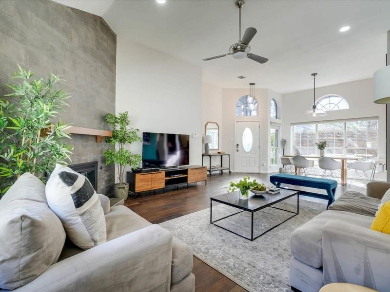 Welcome to this spectacular home in the heart of northern Dallas! This place will leave you in awe with its thoughtful furnishings and boho-luxury amenities! The picturesque exterior is just the beginning as you explore all this house offers. With 3 bedrooms and a backyard for entertaining with a hot tub, deck, outdoor shower, and BBQ grill, this place was meant to create amazing memories! 3 bedrooms (sleeps 8) 2 bathrooms Fully equipped kitchen Hot tub and outdoor shower Deck and BBQ grill The Space Our home caters to both short-term and medium-term stays, making it an excellent choice for corporate housing needs. Whether you find yourself temporarily displaced from your home or require accommodations for your team during an extended project in our area, we provide a welcoming and comfortable "home away from home" experience. KITCHEN This fully equipped kitchen is a chef's dream with stainless steel appliances and everything you need to whip up delicious meals and snacks! Fully equipped kitchen for all your cooking needs Standard appliances, including fridge, freezer, stove, oven, dishwasher, and microwave Cooking essentials including pots, pans, utensils, etc. Kitchen island with seating DINING ROOM As you sit down to enjoy your meal, you'll be struck by the simple elegance in the dining room. You can enjoy a restaurant-like environment right here from the comforts of your home away from home. From the natural sunlight streaming in through the windows to the natural material of the furniture, every aspect of this space has been carefully crafted to create the perfect dining experience. Dedicated dining room Dining table with seat settings for 6+ guests Plenty of natural light Place settings and dining utensils Highchair available for little ones LIVING ROOM When you're ready to relax, the high vaulted ceilings and beautiful decor make this living room the perfect place to unwind with a glass of wine or a cup of coffee. The tasteful décor and stylish furniture create a space of elevated sophistication with playful pops of color. Sofa, couch, and bench for plenty of seating Coffee table, designer rug, and media console Large flat-screen TV and high-speed Wi-Fi High vaulted ceilings for a spacious feel BEDROOMS No matter which bedroom you settle into, all these bedrooms have been designed with your comfort and well-being in mind. Our vision is to create the perfect space for a peaceful and restful night's sleep, so we’ve taken great care with the color palette, bedding, and furniture choices. 3 bedrooms furnished with your comforts in mind Master ensuite with a king-sized bed, ensuite bathroom, and walk-in closet 2 additional bedrooms with queen and bunk beds for plenty of sleeping space Can comfortably sleep up to 8 guests BATHROOM Don’t worry - our attention to detail certainly extends into the bathrooms! The 2 bathrooms in this house are just as cheerful as the rest of the house with continued playful pops of color. 2 bathrooms with playful pops of color Stand-up glass walk-in shower for easy access Relaxing bathtub for warm bubble baths Essential toiletries included such as towels, toilet paper, etc BACKYARD Designed for entertaining and living life to its fullest, feel free to make the most of Texas’ warm weather in this space. Slide into the relaxing hot tub and let the warm waters soothe away your worries. Hot tub and outdoor shower Outdoor BBQ grill Furnished deck with outdoor furniture Fully fenced yard for your privacy OTHER AMENITIES Free parking is available to all guests on the premises. An EV charger is also available. If additional parking is needed, feel free to park on the neighborhood streets as well. The laundry room is fully equipped with a washer and dryer should you need to refresh your clothing during your stay. Lastly, we must stress that we do NOT allow parties or large unauthorized gatherings of any sort at our property. We are adamant about only welcoming families and groups who are looking to relax and enjoy the beautiful stunning backyard and the amenities the home has to offer. Other things to note GUEST VERIFICATION REQUIRED To help ensure a safe and seamless experience for all guests, guest verification is required prior to confirming your reservation. This simple step is part of our commitment to providing a secure, smooth, and personalized stay for every guest. PET-FRIENDLY STAY Don’t leave your furry friends back home. Take them with you so they can enjoy a perfect vacation! We welcome house-trained pets with a non-refundable pet fee of USD150 per pet (maximum of 2 pets per stay). Please notify us in advance so we can make the necessary arrangements to ensure a comfortable stay for you and your four-legged companions. NO PARTIES/LARGE GATHERINGS We hope you use and love our home but must remind you that only registered guests will be allowed over while you are renting our property. Please feel free to reach out if you have any questions. Goldnest has engaged VacayHome to ensure this listing contains all the information you need and that it is easy for you to book via search engines & online channels. VacayHome is connected directly to the property management system used by Goldnest which ensures that availability & rates are up-to-date & accurate. When you book, VacayHome processes payment on behalf of Goldnest and a charge will appear on your statement as "VacayHome". VacayHome will send you a confirmation e-mail that contains all the information you need to prepare for your vacation including arrival instructions. VacayHome has a 24 x 7 team to assist you with any questions or concerns you may have prior to arrival. To access VacayHome, obtain the customer support telephone number or read FAQs, please click on the links at the bottom of this page.