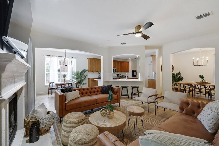 You won’t want to miss out on this rare beauty of a vacation home! This spacious, sprawling mansion has it all – a swimming pool, cinema room, dream kitchen and more! With ample space for large groups, you’ll have plenty of space to spread out and relax. With so much to see and do in the area, including shopping, dining, and entertainment, you'll never run out of things to do during your stay! 6 bedrooms (sleeps 18) 3 bathrooms Fully equipped kitchen Pool, patio, firepit Cinema room The Space Our home caters to both short term and medium term stays, making it an excellent choice for corporate housing needs. Whether you find yourself temporarily displaced from your home or require accomodations for your team during an extended project in our area, we provide a welcoming and comfortable "home away from home" experience. KITCHEN Welcome to this fully equipped chef’s kitchen, designed to make cooking and entertaining a breeze! Fully equipped kitchen for all your cooking needs Standard appliances – dual ovens, fridge, freezer, stove, microwave, dishwasher Cooking essentials, including pots, pans, baking sheets, etc. Center kitchen island DINING With seating for 8+ guests, this spacious and inviting dining area offers the perfect setting for a delectable meal shared among friends and family. Dedicated dining area Wooden table with seating for 8+ Place settings and cutlery Restaurant-like environment LIVING AREA As you step into the living room, you'll be greeted by a cozy and inviting atmosphere that's perfect for unwinding after a long day. Cozy and inviting atmosphere Comfortable couches and sofas Coffee table, natural greenery, and floor rug Gas fireplace for a cozy environment BEDROOMS Each bedroom is equipped with a variety of features to ensure a comfortable and restful stay. 6 uniquely furnished bedrooms Variety of bed arrangements with king, queen, and bunk beds Bedside tables, wall art, and lamps in every room Can comfortably sleep up to 18 guests BATHROOMS Indulge in luxury and relaxation in our stunning bathrooms featuring glass walk-in showers, luxurious bathtubs, and dual vanities. These beautiful spaces offer a perfect oasis to rejuvenate after a long day of adventure. 3 full bathrooms Spa-like glass walk-in shower Bathtubs for warm bubble baths Essential toiletries included (i.e. towels, toilet paper, etc.) CINEMA ROOM You’ll want to check out this neat cinema room- it’s the perfect spot for movie nights at home! HDTV TV and high-speed Wi-Fi Comfortable couches and sofas Coffee table, natural greenery, and floor rug Overhead fan for air circulation BACKYARD Step into your very own outdoor oasis with our stunning backyard, perfect for soaking up the sunshine and relaxing under the stars. Lounge poolside, take a dip in the refreshing waters of the pool, or cozy up around the firepit with friends and family. Our spacious patio area provides the ideal spot for al fresco dining or a morning cup of coffee. Outdoor swimming pool Semi-covered patio space with outdoor furniture Fire pit with lounge chairs Fully fenced yard for your privacy ADDITIONAL AMENITIES Free parking is available to guests on the driveway or in the garage. There is also plenty of space available on the neighborhood streets in front of the house. A laundry room with a washer and dryer is available for your use should you wish to refresh your clothing during your stay. Lastly, we must stress that we do NOT allow parties or large unauthorized gatherings of any sort at our property. We are adamant about only welcoming families and groups who are looking to relax and enjoy the beautiful stunning backyard and the amenities the home has to offer. Please note: We have 2 cameras installed on exterior wall facing the street (main entrance + driveway). All devices will be ON and recording 24/7 during your stay. No cameras installed inside the property to ensure guest's privacy. Other things to note GUEST VERIFICATION REQUIRED To help ensure a safe and seamless experience for all guests, guest verification is required prior to confirming your reservation. This simple step is part of our commitment to providing a secure, smooth, and personalized stay for every guest. PET-FRIENDLY STAY Don’t leave your furry friends back home. Take them with you so they can enjoy a perfect vacation! We welcome house-trained pets with a non-refundable pet fee of USD150 per pet (maximum of 2 pets per stay). Please notify us in advance so we can make the necessary arrangements to ensure a comfortable stay for you and your four-legged companions. NO PARTIES/LARGE GATHERINGS We hope you use and love our home but must remind you that only registered guests will be allowed over while you are renting our property. Please feel free to reach out if you have any questions. If you’re not sure if your stay falls under these restrictions, please consult before booking. Goldnest has engaged VacayHome to ensure this listing contains all the information you need and that it is easy for you to book via search engines & online channels. VacayHome is connected directly to the property management system used by Goldnest which ensures that availability & rates are up-to-date & accurate. When you book, VacayHome processes payment on behalf of Goldnest and a charge will appear on your statement as "VacayHome". VacayHome will send you a confirmation e-mail that contains all the information you need to prepare for your vacation including arrival instructions. VacayHome has a 24 x 7 team to assist you with any questions or concerns you may have prior to arrival. To access VacayHome, obtain the customer support telephone number or read FAQs, please click on the links at the bottom of this page.