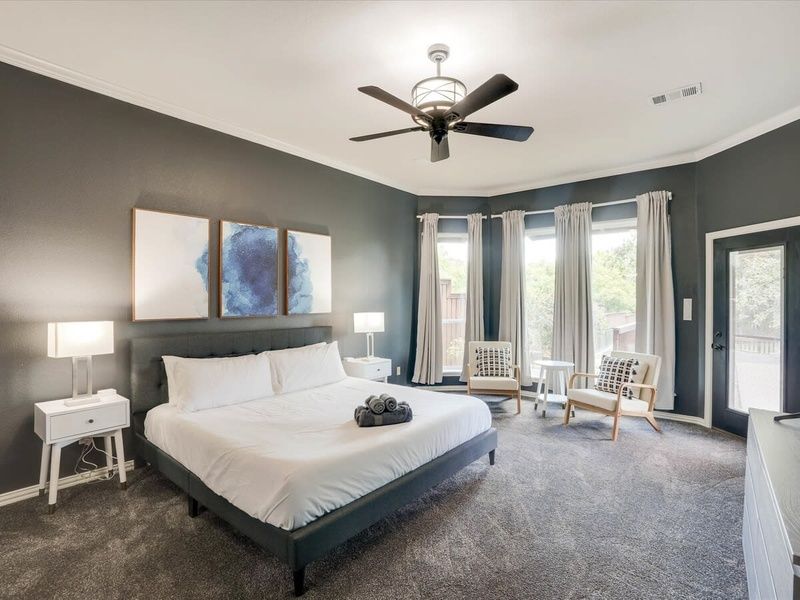 Wow! No need to pinch yourself – this dream vacation home may have everything you’re looking for but it’s certainly not a dream! Located on a half-acre lot, this place is as luxurious as they come. With a spacious layout, high-end finishes, and a backyard pool oasis, this is one vacation home you don’t want to miss out on. 5 bedrooms (sleeps up to 14 guests) 3 bathrooms Fully equipped chef’s kitchen 3-level deck + grill Outdoor swimming pool and jacuzzi Views of Lake Lewisville The Space Our home caters to both short term and medium term stays, making it an excellent choice for corporate housing needs. Whether you find yourself temporarily displaced from your home or require accomodations for your team during an extended project in our area, we provide a welcoming and comfortable "home away from home" experience. KITCHEN We’ll give you some time to jaw drop at this sparkling white kitchen! Undeniably the heart of the home with quartz countertops, Kraftmaid cabinets, and stainless steel appliances, this kitchen is a dream to cook in! Fully equipped kitchen for all your cooking needs Stainless steel appliances - double oven, fridge, freezer, stove, microwave, dishwasher Cooking essentials, place settings, and dining utensils LIVING AREA This living space was designed for creating great memories with family and friends! Tastefully furnished with your comfort in mind, use this space to catch up with good company, read a book, or watch your favorite TV shows! Open and spacious with vaulted ceilings Comfortable couches for seating Coffee tables, lighting, and designer rug Flat-screen TV and high-speed Wi-Fi DINING Make dining an experience as you settle into the built-in banquette. With plenty of natural light, this space is perfect for enjoying a homecooked southern meal shared with some of your favorite people! Dedicated dining room for sit-down meals Dinner table with seating for 8+ Bright natural lighting from nearby windows BEDROOMS With 5 bedrooms to choose from, you’ll want to take a look at all of them before settling in! 5 bedrooms Various room arrangements with king, queen, and bunk beds available Can comfortably sleep up to 14 guests BATHROOMS 3 sparkling clean bathrooms Large soaker tub Granite walk-in standing shower Jack-and-jill vanities BACKYARD Take in the stunning views of Lake Lewisville from the 3-level deck, gazebo, balcony, or pool! You’ll be hard-pressed to find a backyard deck as impressive as this one. Custom designed and centered around the swimming pool and jacuzzi, take full advantage of our warm Texas weather and enjoy the perks of indoor/outdoor living! Outdoor swimming pool and Jacuzzi 3-level deck with gazebo Loungers, hammock, and patio set Fully fenced yard for your privacy ADDITIONAL AMENITIES Free parking is available to guests in the triple-car garage and driveway. A laundry room has a washer and dryer available for your use. Lastly, we must stress that we do NOT allow parties or large unauthorized gatherings of any sort at our property. We are adamant about only welcoming families and groups who are looking to relax and enjoy the beautiful stunning backyard and the amenities the home has to offer. Other things to note SAFETY DEPOSIT OR DAMAGE WAIVER REQUIRED We understand that accidents can happen. To help protect the space and ensure a worry-free stay, all reservations require either a damage waiver or a safety deposit. You can choose the option that works best for you: a non-refundable damage waiver ranging from USD39 up to USD79, which covers accidental damage and normal wear and tear (no deductible) or a refundable safety deposit of USD450, which will be returned after checkout as long as no damage is found and all house rules are followed. If you’ve already purchased Damage Protection Insurance through a third-party provider, feel free to share your policy with us—we’re happy to review it and we may consider waving the requirement based on your coverage. Please note: The damage waiver does not cover damage caused by house rule violations. GUEST VERIFICATION REQUIRED To help ensure a safe and seamless experience for all guests, guest verification is required prior to confirming your reservation. This simple step is part of our commitment to providing a secure, smooth, and personalized stay for every guest. PET-FRIENDLY STAY Don’t leave your furry friends back home. Take them with you so they can enjoy a perfect vacation! We welcome house-trained pets with a non-refundable pet fee of USD150 per pet (maximum of 2 pets per stay). Please notify us in advance so we can make the necessary arrangements to ensure a comfortable stay for you and your four-legged companions. SHORT TERM RENTAL PERMIT The Short-Term Rental Permit Number for this house is STR-24-111 issued by the City of Lewisville. Goldnest has engaged VacayHome to ensure this listing contains all the information you need and that it is easy for you to book via search engines & online channels. VacayHome is connected directly to the property management system used by Goldnest which ensures that availability & rates are up-to-date & accurate. When you book, VacayHome processes payment on behalf of Goldnest and a charge will appear on your statement as "VacayHome". VacayHome will send you a confirmation e-mail that contains all the information you need to prepare for your vacation including arrival instructions. VacayHome has a 24 x 7 team to assist you with any questions or concerns you may have prior to arrival. To access VacayHome, obtain the customer support telephone number or read FAQs, please click on the links at the bottom of this page.