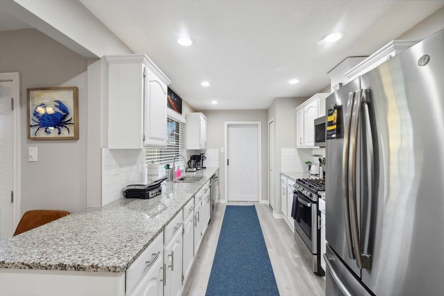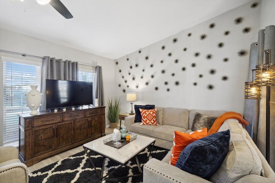 Looking for a nice quiet vacation getaway? This is it! Let this charming rancher-style house be your home away from home! Featuring 4 bedrooms and 2 bathrooms, this place offers plenty of open space to gather with friends and family. The backyard features a hot tub and a furnished patio for outdoor dining. What are you waiting for? Book soon! 4 bedrooms (sleeps 8) 2 bathrooms Fully equipped kitchen Backyard with hot tub and patio Lofted ceilings and open-concept layout The Space Our home caters to both short-term and medium-term stays, making it an excellent choice for corporate housing needs. Whether you find yourself temporarily displaced from your home or require accommodations for your team during an extended project in our area, we provide a welcoming and comfortable "home away from home" experience. KITCHEN This fully equipped kitchen has everything you need to whip up a tasty home-cooked feast! Fully equipped kitchen for all your cooking needs Stainless steel appliances - oven, fridge, freezer, stove, microwave, dishwasher Cooking essentials including blender, toaster, and coffee machine Quartz countertops, natural sunlight, and ample counter space LIVING AREA Featuring loft ceilings for a spacious, airy environment, this chic living area was designed for creating great memories with family and friends! Sectional and sofas for plenty of seating Coffee tables, designer rug, and overhead fan Flat-screen TV and high-speed Wi-Fi Open-concept layout DINING ROOM There’s nothing quite like a homecooked meal shared amongst some of your favorite people so gather around and enjoy a toast to each other’s company. Dedicated dining room for sit-down meals Dining table with seating for 8 Place settings and utensils Artwork, décor, and light fixtures BEDROOMS With 4 bedrooms to choose from, be sure to check them all out before settling in! Every bedroom has been curated with a pleasing color palette of blues and neutrals to create a restful environment for your sleep. Primary bedroom with king-sized bed and ensuite bathroom 3 additional bedrooms with queen-sized mattresses Bedside tables, lamps, and dressers Can comfortably sleep up to 8 guests BATHROOMS Whether you prefer the convenience of a walk-in shower or the soaking luxury of a bathtub, this place has both options available to you! 2 private full bathrooms Glass walk-in standing showers for easy accessibility Shower and bathtub for a nice bubble bath Essential toiletries included BACKARD Make the most of Texas’ warm weather with some indoor/outdoor dining! This backyard has two furnished outdoor dining areas – one covered and one uncovered so you can take your pick. In addition, there’s also a hot tub in the backyard that’s perfect for relaxing soaks to soothe away the stresses of daily life. Covered patio for indoor/outdoor living Two outdoor dining areas Hot tub for relaxation Fully fenced for your privacy ADDITIONAL AMENITIES Free parking is available to guests. The garage fit one car and the driveway has parking space for two vehicles. There is a laundry room with a washer and dryer available for your use. Lastly, we must stress that we do NOT allow parties or large unauthorized gatherings of any sort at our property. Other things to note BOOKING DURATION POLICY Please note: this property can only be booked for a minimum of 2 nights and a maximum of 30 nights. SAFETY DEPOSIT OR DAMAGE WAIVER REQUIRED We understand that accidents can happen. To help protect the space and ensure a worry-free stay, all reservations require either a damage waiver or a safety deposit. You can choose the option that works best for you: a non-refundable damage waiver ranging from USD39 up to USD79, which covers accidental damage and normal wear and tear (no deductible) or a refundable safety deposit of USD450, which will be returned after checkout as long as no damage is found and all house rules are followed. If you’ve already purchased Damage Protection Insurance through a third-party provider, feel free to share your policy with us—we’re happy to review it and we may consider waving the requirement based on your coverage. Please note: The damage waiver does not cover damage caused by house rule violations. GUEST VERIFICATION REQUIRED To help ensure a safe and seamless experience for all guests, guest verification is required prior to confirming your reservation. This simple step is part of our commitment to providing a secure, smooth, and personalized stay for every guest. PET-FRIENDLY STAY Don’t leave your furry friends back home. Take them with you so they can enjoy a perfect vacation! We welcome house-trained pets with a non-refundable pet fee of USD150 per pet (maximum of 2 pets per stay). Please notify us in advance so we can make the necessary arrangements to ensure a comfortable stay for you and your four-legged companions. Goldnest has engaged VacayHome to ensure this listing contains all the information you need and that it is easy for you to book via search engines & online channels. VacayHome is connected directly to the property management system used by Goldnest which ensures that availability & rates are up-to-date & accurate. When you book, VacayHome processes payment on behalf of Goldnest and a charge will appear on your statement as "VacayHome". VacayHome will send you a confirmation e-mail that contains all the information you need to prepare for your vacation including arrival instructions. VacayHome has a 24 x 7 team to assist you with any questions or concerns you may have prior to arrival. To access VacayHome, obtain the customer support telephone number or read FAQs, please click on the links at the bottom of this page.