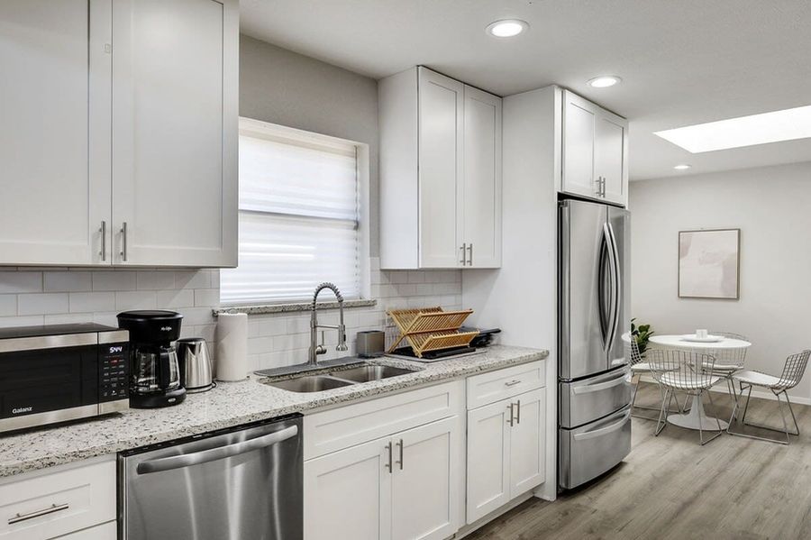 Cozy and comfortable, this adorable hideaway is perfect for those looking to spend some time in Fort Worth. With 4 bedrooms and 2 bathrooms, this vacation home can easily accommodate large groups of up to 10 guests. 4 bedrooms (sleeps up to 10 guests) 2 bathrooms Fully equipped chef’s kitchen Free parking and laundry Backyard patio The Space Our home caters long term stays, making it an excellent choice for corporate housing needs. Whether you find yourself temporarily displaced from your home or require accommodations for your team during an extended project in our area, we provide a welcoming and comfortable "home away from home" experience. KITCHEN Fully equipped with all the cooking essentials, feel free to unleash your culinary prowess in this dream kitchen! Fully equipped kitchen for all your cooking needs Stainless steel appliances, including fridge, freezer, stove, oven, dishwasher, and microwave Kitchen island and breakfast bar with bar stools Cooking essentials including pots, pans, baking sheets, utensils, etc. DINING We believe in good food with great drinks and even better company! With this spirit in mind, we’ve designed this dining room to offer you a restaurant-like environment without any of the hassles. Dedicated dining area for sit-down meals Spacious dining table seating for 6 Place settings and dining utensils Restaurant-like environment LIVING ROOM Spacious and airy with vaulted ceilings and plenty of natural light, this spacious open-concept living room is a comfortable space for you to enjoy. Vaulted ceilings and plenty of natural light Comfortable seating and HDTV Open-concept layout for easy socializing Dedicated wet bar, perfect for crafting your favorite drinks BEDROOMS No matter which bedroom you choose, rest assured knowing that each bedroom has been furnished with your comfort in mind with decorative artwork, soothing color palettes, and bedside tables for your convenience. Primary bedroom with a king-sized bed and ensuite bathroom 2 additional bedrooms, with full-sized beds and a bunk bed 4th bedroom is also the sunroom with a sofa bed (please note this room is the one with access to the backyard) Living room sofa can be used for sleeping Can comfortably sleep up to 10 guests BATHROOMS You might want to call dibs on the primary bedroom just for the ensuite bathroom! Not only does this bathroom have luxury marble finishes but it also has a walk-in rain shower head to elevate your shower from something that has to be done to something that you want to do. We’ve also provided some essential toiletries so you don’t have to worry about them. 2 full bathrooms Walk-in shower for ease of access Essential toiletries included (i.e. soap, shampoo, linens, etc) OTHER AMENITIES Free parking is available to all guests. There is a double garage available for your use as well as space on the driveway. If additional space is required, feel free to park on the streets as well. The laundry room is fully equipped with a washer and dryer should you need to refresh your clothing during your stay. Lastly, we must stress that we do NOT allow parties or large unauthorized gatherings of any sort at our property. We are adamant about only welcoming families and groups who are looking to relax and enjoy the beautiful stunning backyard and the amenities the home has to offer. Other things to note THIS HOUSE ACCEPT ONLY 30+ DAYS RENTALS SAFETY DEPOSIT OR DAMAGE WAIVER REQUIRED We understand that accidents can happen. To help protect the space and ensure a worry-free stay, all reservations require either a damage waiver or a safety deposit. You can choose the option that works best for you: a non-refundable damage waiver ranging from USD39 up to USD79, which covers accidental damage and normal wear and tear (no deductible) or a refundable safety deposit of USD450, which will be returned after checkout as long as no damage is found and all house rules are followed. If you’ve already purchased Damage Protection Insurance through a third-party provider, feel free to share your policy with us—we’re happy to review it and we may consider waving the requirement based on your coverage. Please note: The damage waiver does not cover damage caused by house rule violations. GUEST VERIFICATION REQUIRED To help ensure a safe and seamless experience for all guests, guest verification is required prior to confirming your reservation. This simple step is part of our commitment to providing a secure, smooth, and personalized stay for every guest. PET-FRIENDLY STAY Don’t leave your furry friends back home. Take them with you so they can enjoy a perfect vacation! We welcome house-trained pets with a non-refundable pet fee of USD150 per pet (maximum of 2 pets per stay). Please notify us in advance so we can make the necessary arrangements to ensure a comfortable stay for you and your four-legged companions. NO PARTIES/LARGE GATHERINGS Goldnest has engaged VacayHome to ensure this listing contains all the information you need and that it is easy for you to book via search engines & online channels. VacayHome is connected directly to the property management system used by Goldnest which ensures that availability & rates are up-to-date & accurate. When you book, VacayHome processes payment on behalf of Goldnest and a charge will appear on your statement as "VacayHome". VacayHome will send you a confirmation e-mail that contains all the information you need to prepare for your vacation including arrival instructions. VacayHome has a 24 x 7 team to assist you with any questions or concerns you may have prior to arrival. To access VacayHome, obtain the customer support telephone number or read FAQs, please click on the links at the bottom of this page.