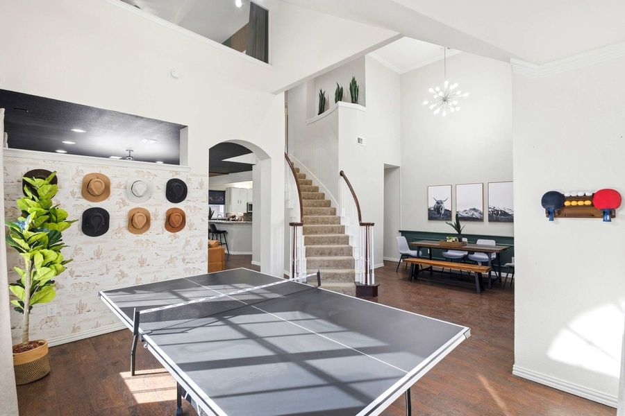 Come enjoy your very own slice of paradise! From high-end finishings to careful attention to detail, you’ll feel like you’ve won the jackpot with this place! With 5 beautifully curated bedrooms, thoughtfully designed living spaces, and both indoor and outdoor entertainment options, this vacation home instantly says “vacation vibes”. 5 bedrooms (sleeps 12) 2.5 bathrooms Fully equipped kitchen Backyard with outdoor swimming pool BBQ grill and furnished patio Ping pong table The Space Our home caters for both short-term and medium-term stays, making it an excellent choice for corporate housing needs. Whether you find yourself temporarily displaced from your home or require accommodation for your team during an extended project in our area, we provide a welcoming and comfortable "home away from home" experience. KITCHEN With classic white cabinets, a convenient center kitchen island, and plenty of counterspace, this kitchen is perfect for you to unleash your culinary prowess! Fully equipped kitchen for all your cooking needs Stainless steel appliances, including fridge, freezer, stove, oven, dishwasher, and microwave Center kitchen island and bar-stool seating DINING From the careful furniture selection to the elegant high ceilings, we hope we’ve created a setting meant for creating memories. Dinner table with seating for 6 Place settings, dining utensils, and decor Additional breakfast nook with seating for 4 LIVING ROOM This cozy, welcoming space has plenty of seating to accommodate your entire group. Thoughtful designer elements and curated décor that pay homage to our Texas roots have been sprinkled throughout to give you an upscale atmosphere. Comfortable seating with couches and armchairs Flat-screen TV and high-speed Wi-Fi Texas-themed décor and artwork BEDROOMS There’s so much to do in the Dallas-Fort Worth region that you’re going to need plenty of energy to explore the many sights and attractions. That’s why we’ve gone out of our way to ensure every bed is a heavenly delight with fluffy pillows, crisp linens, and comfortable mattresses. 5 thoughtfully furnished bedrooms King, queen, and bunk beds available Texas-themed décor, bedside tables, and lamps Can comfortably sleep 12 guests BACKYARD Don’t forget to pack your swimsuits! This gorgeous, fully fenced backyard boasts a spectacular outdoor swimming pool that will remind you of a tropical paradise! Whether you prefer some fun in the sun, fun on the patio, or fun by the grill, there’s plenty of fun to go around! OTHER AMENITIES Free parking is available to all guests. The laundry room is fully equipped with a washer and dryer should you need to refresh your clothing during your stay. A fun ping pong table is also available for your use. Feel free to challenge your friends to a few friendly matches! Lastly, we must stress that we do NOT allow parties or large unauthorized gatherings of any sort on our property. We are adamant about only welcoming families and groups who are looking to relax and enjoy the beautiful stunning backyard and the amenities the home has to offer. Other things to note NO PARTIES/LARGE GATHERINGS We hope you use and love our home but must remind you that only registered guests will be allowed over while you are renting our property. Please feel free to reach out if you have any questions. If you’re not sure if your stay falls under these restrictions, please consult before booking. SAFETY DEPOSIT OR DAMAGE WAIVER REQUIRED We understand that accidents can happen. To help protect the space and ensure a worry-free stay, all reservations require either a damage waiver or a safety deposit. You can choose the option that works best for you: a non-refundable damage waiver ranging from USD39 up to USD79, which covers accidental damage and normal wear and tear (no deductible) or a refundable safety deposit of USD450, which will be returned after checkout as long as no damage is found and all house rules are followed. If you’ve already purchased Damage Protection Insurance through a third-party provider, feel free to share your policy with us—we’re happy to review it and we may consider waiving the requirement based on your coverage. Please note: The damage waiver does not cover damage caused by house rule violations. GUEST VERIFICATION REQUIRED To help ensure a safe and seamless experience for all guests, guest verification is required prior to confirming your reservation. This simple step is part of our commitment to providing a secure, smooth, and personalized stay for every guest. PET-FRIENDLY STAY Don’t leave your furry friends back home. Take them with you so they can enjoy a perfect vacation! We welcome house-trained pets with a non-refundable pet fee of USD150 per pet (maximum of 2 pets per stay). Please notify us in advance so we can make the necessary arrangements to ensure a comfortable stay for you and your four-legged companions. Goldnest has engaged VacayHome to ensure this listing contains all the information you need and that it is easy for you to book via search engines & online channels. VacayHome is connected directly to the property management system used by Goldnest which ensures that availability & rates are up-to-date & accurate. When you book, VacayHome processes payment on behalf of Goldnest and a charge will appear on your statement as "VacayHome". VacayHome will send you a confirmation e-mail that contains all the information you need to prepare for your vacation including arrival instructions. VacayHome has a 24 x 7 team to assist you with any questions or concerns you may have prior to arrival. To access VacayHome, obtain the customer support telephone number or read FAQs, please click on the links at the bottom of this page.