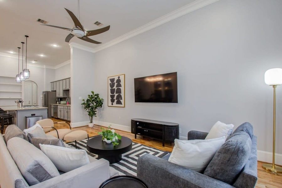 Come live where others go to play! Conveniently located in central Houston only minutes from Memorial Park, Downtown, and the Energy Corridor, this place has all the bells and whistles and it’s sure to leave you impressed! Not only is there an outdoor swimming pool, there’s also a landscaped patio area, a spa-like bathroom retreat, and high-end finishes throughout. 4 bedrooms (sleeps 12) 3.5 bathrooms Fully equipped kitchen Outdoor swimming pool and patio Convenient central location The Space Our home caters to both short term and medium term stays, making it an excellent choice for corporate housing needs. Whether you find yourself temporarily displaced from your home or require accomodations for your team during an extended project in our area, we provide a welcoming and comfortable "home away from home" experience. KITCHEN No need to pinch yourself – this dream kitchen is yours for the cooking! Beautifully designed with the best of functionality and luxury in mind, this kitchen is sure to impress. Sleek grey cabinets offer the perfect complement to the oversized kitchen island, which features bar seating for those who enjoy partaking in kitchen skimming. Fully equipped kitchen for all your cooking needs Stainless steel appliances, including fridge, freezer, stove, oven, dishwasher, and microwave Oversized kitchen island with seating Basic cooking essentials included DINING We believe that where you eat is just as important as what you eat, which is why we’ve created this dining space to amplify your dinner experience! Dedicated dining area for sit-down meals Dining table with seat settings for 8 Place settings and dining utensils Wine cooler and bar area LIVING ROOM When we said this place has all the bells and whistles, we meant it! With motorized window shades, you can customize this space to your liking! Feel free to adjust the amount of natural sunlight streaming in through the large living room windows or, if you prefer, adjust to give yourself a bit more added privacy. You have the power! Open-concept layout for easy socializing Couches, coffee tables, and designer rug Flat-screen TV and high-speed Wi-Fi Glass patio doors with direct access to backyard BEDROOMS Catch up on the zzz’s from the comforts of these beautiful bedrooms! Master bedroom with a king-sized bed, sitting area, and full-length mirror 3 additional bedrooms with queen-sized beds and bunk beds Work stations with desks, chair, and lighting available Can comfortably sleep 12 guests BATHROOMS Looking for a bit of quiet me-time? Make your way to this amazing ensuite bathroom! Created to offer a spa-like experience from the comforts of home, you’ll want to draw up a warm bubble bath for yourself! After all, there’s nothing quite like some good ol’ rest and relaxation. 3.5 private bathrooms Spa-like ensuite bathroom with bathtub and glass walk-in shower Essential toiletries included (toilet paper, towels, etc.) BACKYARD Don’t miss out on this private backyard retreat! This immaculately landscaped space includes a patio area, outdoor grill, and a swimming pool! After you enjoy a refreshing dip in the pool, feel free to relax by the pool on one of the many outdoor seating options available! If you’ve worked up an appetite, the patio area is perfect for outdoor dining. Outdoor swimming pool with pristine landscaping Patio area with outdoor dining and seating Outdoor grill for your BBQ’ing pleasure Fully fenced yard for your privacy OTHER AMENITIES Free parking is available to all guests in the two-car garage and on the driveway. If additional space is required, feel free to park on the streets as well. The laundry room is fully equipped with a washer and dryer should you need to refresh your clothing during your stay. Lastly, we must stress that we do NOT allow parties or large unauthorized gatherings of any sort at our property. We are adamant about only welcoming families and groups who are looking to relax and enjoy the beautiful stunning backyard and the amenities the home has to offer. Other things to note GUEST VERIFICATION REQUIRED To help ensure a safe and seamless experience for all guests, guest verification is required prior to confirming your reservation. This simple step is part of our commitment to providing a secure, smooth, and personalized stay for every guest. PET-FRIENDLY STAY Don’t leave your furry friends back home. Take them with you so they can enjoy a perfect vacation! We welcome house-trained pets with a non-refundable pet fee of USD150 per pet (maximum of 2 pets per stay). Please notify us in advance so we can make the necessary arrangements to ensure a comfortable stay for you and your four-legged companions. SHORT TERM RENTAL PERMIT The Short-Term Rental Permit Number for this house is STR-2025-000452 issued by the City of Houston. Goldnest has engaged VacayHome to ensure this listing contains all the information you need and that it is easy for you to book via search engines & online channels. VacayHome is connected directly to the property management system used by Goldnest which ensures that availability & rates are up-to-date & accurate. When you book, VacayHome processes payment on behalf of Goldnest and a charge will appear on your statement as "VacayHome". VacayHome will send you a confirmation e-mail that contains all the information you need to prepare for your vacation including arrival instructions. VacayHome has a 24 x 7 team to assist you with any questions or concerns you may have prior to arrival. To access VacayHome, obtain the customer support telephone number or read FAQs, please click on the links at the bottom of this page.
