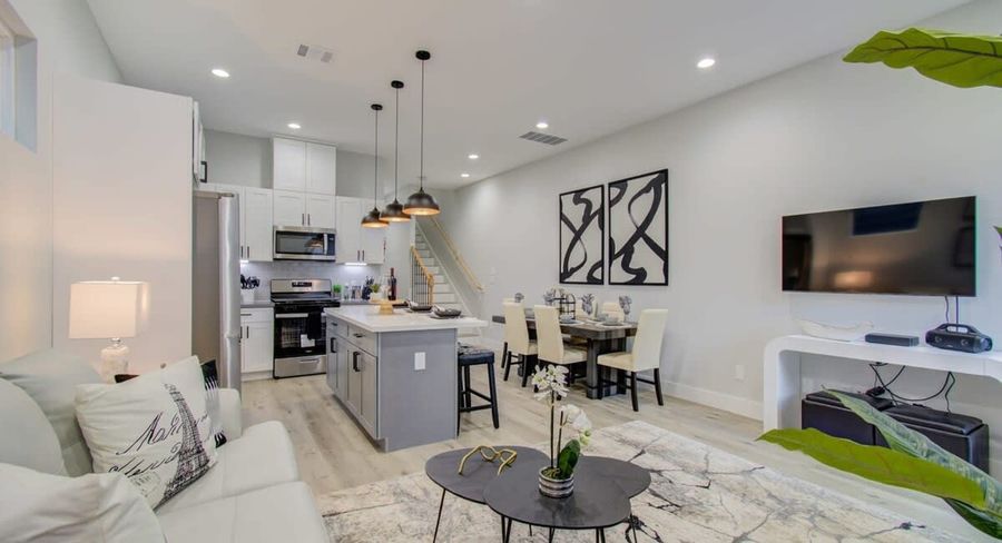 Welcome to the heart of Houston! Centrally located only minutes from downtown attractions and popular neighborhoods, come check out this modern vacation home! Full of exquisite features and quality finishes throughout, this place features a beautiful chef’s kitchen, a seamless open-concept layout, and a private backyard! You won’t want to miss out on this gem! 3 bedrooms (sleeps 10) 2.5 bathrooms Fully equipped chef’s kitchen Private backyard Convenient location The Space Our home caters to both short term and medium term stays, making it an excellent choice for corporate housing needs. Whether you find yourself temporarily displaced from your home or require accomodations for your team during an extended project in our area, we provide a welcoming and comfortable "home away from home" experience. KITCHEN This kitchen looks like it belongs on the set of the latest HGTV show! Jaw-droppingly stunning, this fully equipped gourmet kitchen stands as the heart of the home with a blend of timeless elegance and contemporary flair. Fully equipped kitchen for all your cooking needs Stainless steel appliances, including fridge, freezer, stove, oven, dishwasher, and microwave All basic cooking essentials included Quartz countertops and a kitchen island LIVING ROOM With an open-concept that seamlessly connects the kitchen and living area, this space is bright and inviting with plenty of space for relaxing and socializing. Open-concept layout for easy socializing Couch, coffee tables, and designer rug Flat-screen TV and high-speed Wi-Fi Curated décor and greenery BEDROOMS There’ll be nothing but sweet dreams from the comforts of these bedrooms! Master bedroom with a queen-sized bed, dresser, and night lamps 2nd bedroom with two queen-sized beds for additional sleeping space 3rd bedroom with two twin-sized beds Can comfortably sleep 10 guests (including living room sofa bed) BATHROOMS Check out the stunning primary ensuite bathroom! You’ll feel like you accidentally wandered into a private spa! Full of elegant charm, this bathroom features a large steam shower with a seating area, an expansive dual sink vanity, and elegant high-end touches. If you’re looking for some quiet “me time”, this is the place you want to be! 2.5 bathrooms so there won’t be any bathroom line-ups Ensuite with an expansive glass walk-in shower and dual sinks Bathtub for warm bubble baths Essential toiletries included (toilet paper, towels, etc.) OTHER AMENITIES Free parking is available to all guests! Feel free to park in the single-car garage as well as on the driveway. There is a fully fenced private backyard available for your use. Fully landscaped with grass, it’s a safe space to let the little ones roam free. Dedicated laundry is available should you need to refresh your clothes during your stay. Lastly, we must stress that we do NOT allow parties or large unauthorized gatherings of any sort at our property. We are adamant about only welcoming families and groups who are looking to relax and enjoy the beautiful stunning backyard and the amenities the home has to offer. Other things to note SAFETY DEPOSIT OR DAMAGE WAIVER REQUIRED We understand that accidents can happen. To help protect the space and ensure a worry-free stay, all reservations require either a damage waiver or a safety deposit. You can choose the option that works best for you: a non-refundable damage waiver ranging from USD39 up to USD79, which covers accidental damage and normal wear and tear (no deductible) or a refundable safety deposit of USD450, which will be returned after checkout as long as no damage is found and all house rules are followed. If you’ve already purchased Damage Protection Insurance through a third-party provider, feel free to share your policy with us—we’re happy to review it and we may consider waving the requirement based on your coverage. Please note: The damage waiver does not cover damage caused by house rule violations. GUEST VERIFICATION REQUIRED To help ensure a safe and seamless experience for all guests, guest verification is required prior to confirming your reservation. This simple step is part of our commitment to providing a secure, smooth, and personalized stay for every guest. PET-FRIENDLY STAY Don’t leave your furry friends back home. Take them with you so they can enjoy a perfect vacation! We welcome house-trained pets with a non-refundable pet fee of USD150 per pet (maximum of 2 pets per stay). Please notify us in advance so we can make the necessary arrangements to ensure a comfortable stay for you and your four-legged companions. SHORT TERM RENTAL PERMIT The Short-Term Rental Permit Number for this house is STR-2025-000566 issued by the City of Houston. NO PARTIES/LARGE GATHERINGS Goldnest has engaged VacayHome to ensure this listing contains all the information you need and that it is easy for you to book via search engines & online channels. VacayHome is connected directly to the property management system used by Goldnest which ensures that availability & rates are up-to-date & accurate. When you book, VacayHome processes payment on behalf of Goldnest and a charge will appear on your statement as "VacayHome". VacayHome will send you a confirmation e-mail that contains all the information you need to prepare for your vacation including arrival instructions. VacayHome has a 24 x 7 team to assist you with any questions or concerns you may have prior to arrival. To access VacayHome, obtain the customer support telephone number or read FAQs, please click on the links at the bottom of this page.