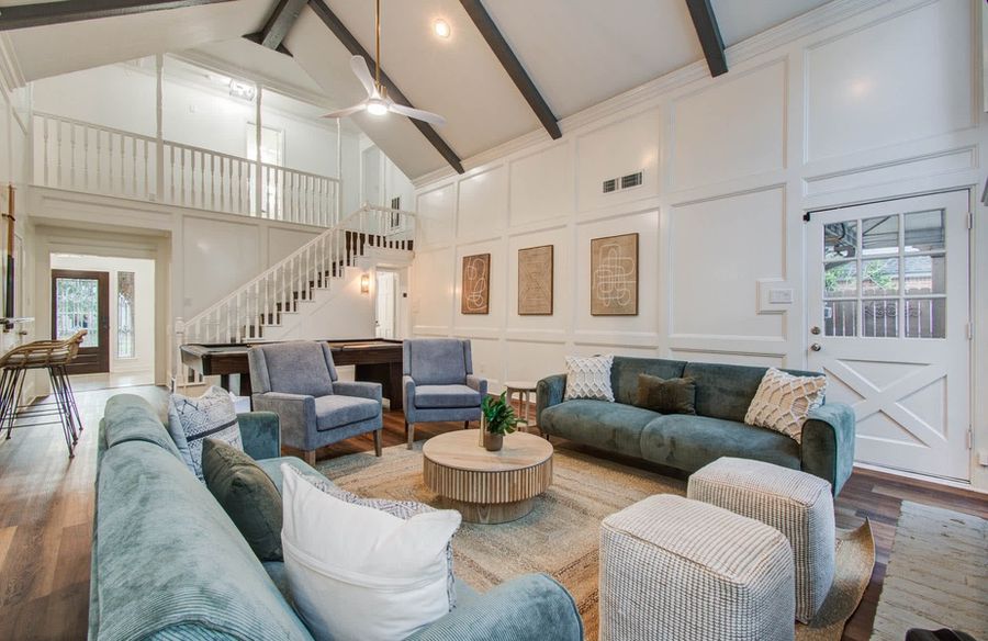 Don’t miss out! Grand and majestic with colonial charm, this vacation home features a beautiful spacious layout to accommodate large groups. Furnished with meticulous attention to detail, this place features a timeless style that will bring you all the comforts of home and more! You’ll also find a game and cinema room plus a backyard pool oasis here! 5 bedrooms (sleeps up to 15 guests) 3.5 bathrooms Fully equipped kitchen Outdoor swimming pool Patio and loungers Game and cinema room The Space Our home caters for both short-term and medium-term stays, making it an excellent choice for corporate housing needs. Whether you find yourself temporarily displaced from your home or require accommodation for your team during an extended project in our area, we provide a welcoming and comfortable "home away from home" experience. KITCHEN Spacious and grand, this fully equipped kitchen has everything you need to unleash your culinary genius! Fully equipped kitchen for all your cooking needs Stainless steel appliances and center kitchen island Cooking essentials included (i.e. pots, pans, etc.) DINING Feel free to grab a quick bite at the breakfast nook or slow things down and enjoy a nice sit-down meal at the dedicated dinner table. The modern light fixtures, playful green accents, and curated dining space will whisk you away with its restaurant-like atmosphere. Breakfast nook with seating for 4 Dinner table with seat settings for 8 Restaurant-like environment LIVING ROOM This living room offers the perfect balance of warmth and coziness, with enough charm and excitement to make you feel like you’re in a stylish getaway! With an air of sophistication and vaulted ceilings, the curated décor has been thoughtfully picked out so you can sit back and relax. Couches and sofas for plenty of sitting Coffee tables and decorative greenery Flat-screen TV and high-speed Wi-Fi Foosball table BEDROOMS From the moment you step into any one of these bedrooms, you’ll feel a sense of calm and tranquility. From the fluffy pillows to the crisp linens and cozy blankets, everything has been designed to ensure you get a good night’s rest! Primary bedroom with a king bed, dedicated sitting area, and ensuite bathroom 4 additional bedrooms with queen and bunk beds Can comfortably sleep up to 15 guests BACKYARD Nothing says vacation like a backyard pool oasis! Take a cool, refreshing dip in an outdoor pool, work on your tan on the poolside loungers, or enjoy your morning coffee from the comforts of the furnished patio. There’s also a furnished covered patio and BBQ grill that’s perfect for al fresco meals outdoors! Outdoor swimming pool with poolside loungers Covered patio with an outdoor dining set BBQ grill and outdoor kitchen Fully fenced yard for your privacy OTHER AMENITIES Free parking is available to all guests in the two-car garage. The laundry room is also fully equipped with a washer and dryer available for your use should you need to refresh your clothing during your stay. Cinema/game room with a large projector screen, pool table, comfortable seating, and a retro-arcade machine! Lastly, we must stress that we do NOT allow parties or large unauthorized gatherings of any sort on our property. We are adamant about only welcoming families and groups who are looking to relax and enjoy the beautiful stunning backyard and the amenities the home has to offer. Other things to note NO PARTIES/LARGE GATHERINGS We hope you use and love our home but must remind you that only registered guests will be allowed over while you are renting our property. Please feel free to reach out if you have any questions. If you’re not sure if your stay falls under these restrictions, please consult before booking. GUEST VERIFICATION REQUIRED To help ensure a safe and seamless experience for all guests, guest verification is required prior to confirming your reservation. This simple step is part of our commitment to providing a secure, smooth, and personalized stay for every guest. PET-FRIENDLY STAY Don’t leave your furry friends back home. Take them with you so they can enjoy a perfect vacation! We welcome house-trained pets with a non-refundable pet fee of $150 per pet (maximum of 2 pets per stay). Please notify us in advance so we can make the necessary arrangements to ensure a comfortable stay for you and your four-legged companions. ADDITIONAL NIGHTLY RATE FOR 6+ GUESTS Our nightly rate includes the first six guests. With each additional guest, a $29/night fee will be applied. FIREPLACE NOTE Please note that our fireplace is inoperable at this moment. We apologize for the inconvenience. Goldnest has engaged VacayHome to ensure this listing contains all the information you need and that it is easy for you to book via search engines & online channels. VacayHome is connected directly to the property management system used by Goldnest which ensures that availability & rates are up-to-date & accurate. When you book, VacayHome processes payment on behalf of Goldnest and a charge will appear on your statement as "VacayHome". VacayHome will send you a confirmation e-mail that contains all the information you need to prepare for your vacation including arrival instructions. VacayHome has a 24 x 7 team to assist you with any questions or concerns you may have prior to arrival. To access VacayHome, obtain the customer support telephone number or read FAQs, please click on the links at the bottom of this page.