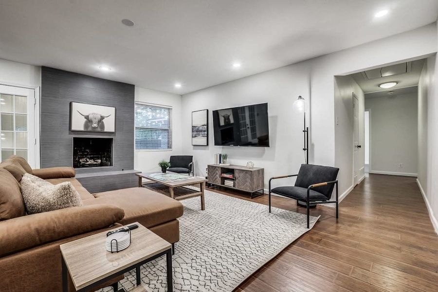 Conveniently located near Coit Rd and Hwy 635, this getaway is only minutes away from Dallas’ main attractions! This spacious property has everything you need for a memorable stay. With a clean modern design, tasteful rustic décor, and comfortable furnishings throughout, this place is just a short drive away from all the best attractions and amenities the city has to offer! 5 bedrooms (sleeps 12) 2 bathrooms Fully equipped kitchen Spacious backyard Fire pit, BBQ grill, lawn games The Space Our home caters to both short-term and medium-term stays, making it an excellent choice for corporate housing needs. Whether you find yourself temporarily displaced from your home or require accommodations for your team during an extended project in our area, we provide a welcoming and comfortable "home away from home" experience. KITCHEN Whether you're preparing a quick snack or an elaborate feast, this kitchen has everything you need to make it a success. Fully equipped kitchen for all your cooking needs Standard appliances, including fridge, freezer, stove, oven, dishwasher, and microwave Cooking essentials including pots, pans, utensils, etc. Breakfast bar seating for 4 DINING ROOM In this stylish dining room, contemporary design meets classic elegance for a timeless atmosphere. Dedicated dining room Dining table with seat settings for 8+ guests Wall décor and natural light LIVING ROOM Comfort and style are seamlessly combined in this spacious living room! Couch and chairs for plenty of seating Coffee table, designer rug, and artwork Wall-mounted TV and high-speed Wi-Fi Cozy fireplace for a warm inviting environment BEDROOMS Our tranquil and serene bedrooms offer the perfect oasis for a good night's sleep. With plenty of sleeping space for up to 12 guests, you'll have ample room to stretch out and relax. Each bedroom has been thoughtfully furnished with your comfort in mind, from plush bedding to cozy blankets and pillows. 5 bedrooms furnished with your comforts in mind Master ensuite with a king-sized bed and ensuite bathroom 4 additional bedrooms with queen beds for additional sleeping space BATHROOM Our bathrooms offer a practical and functional space for all your hygiene needs. Equipped with both a bathtub and a walk-in shower, you'll have options for refreshing yourself during your stay. 2 full private bathrooms Stand-up walk-in shower for easy access Relaxing bathtub for warm bubble baths Essential toiletries included such as towels, soap, toilet paper, etc BACKYARD This backyard is the perfect retreat for those looking to relax and unwind! During the day, feel free to challenge your friends to some friendly lawn games. At night, grab a seat on one of the loungers and gather around the fire pit. Beautifully manicured lawn Outdoor BBQ grill and lawn games Fire pit with loungers Fully fenced yard for your privacy OTHER AMENITIES Free parking is available to all guests in the garage or on the private back driveway. If additional parking is needed, feel free to park on the neighborhood streets as well. The laundry room is fully equipped with a washer and dryer should you need to refresh your clothing during your stay. Lastly, we must stress that we do NOT allow parties or large unauthorized gatherings of any sort at our property. We are adamant about only welcoming families and groups who are looking to relax and enjoy the beautiful stunning backyard and the amenities the home has to offer. Other things to note SAFETY DEPOSIT OR DAMAGE WAIVER REQUIRED We understand that accidents can happen. To help protect the space and ensure a worry-free stay, all reservations require either a damage waiver or a safety deposit. You can choose the option that works best for you: a non-refundable damage waiver ranging from USD39 up to USD79, which covers accidental damage and normal wear and tear (no deductible) or a refundable safety deposit of USD450, which will be returned after checkout as long as no damage is found and all house rules are followed. If you’ve already purchased Damage Protection Insurance through a third-party provider, feel free to share your policy with us—we’re happy to review it and we may consider waving the requirement based on your coverage. Please note: The damage waiver does not cover damage caused by house rule violations. GUEST VERIFICATION REQUIRED To help ensure a safe and seamless experience for all guests, guest verification is required prior to confirming your reservation. This simple step is part of our commitment to providing a secure, smooth, and personalized stay for every guest. PET-FRIENDLY STAY Don’t leave your furry friends back home. Take them with you so they can enjoy a perfect vacation! We welcome house-trained pets with a non-refundable pet fee of USD150 per pet (maximum of 2 pets per stay). Please notify us in advance so we can make the necessary arrangements to ensure a comfortable stay for you and your four-legged companions. Goldnest has engaged VacayHome to ensure this listing contains all the information you need and that it is easy for you to book via search engines & online channels. VacayHome is connected directly to the property management system used by Goldnest which ensures that availability & rates are up-to-date & accurate. When you book, VacayHome processes payment on behalf of Goldnest and a charge will appear on your statement as "VacayHome". VacayHome will send you a confirmation e-mail that contains all the information you need to prepare for your vacation including arrival instructions. VacayHome has a 24 x 7 team to assist you with any questions or concerns you may have prior to arrival. To access VacayHome, obtain the customer support telephone number or read FAQs, please click on the links at the bottom of this page.