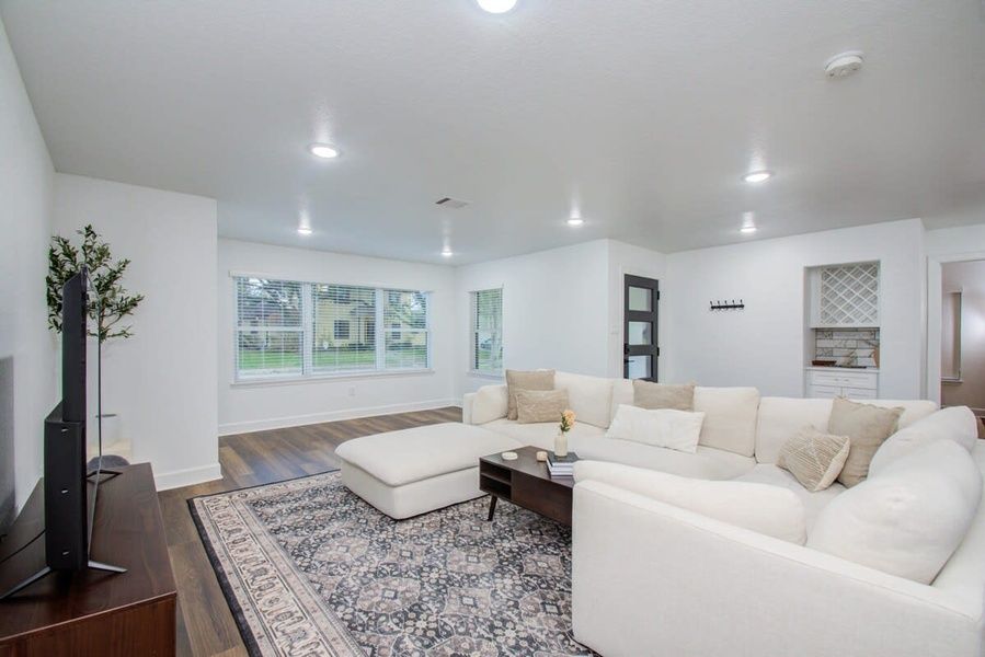 Check out this gorgeous bungalow! Newly constructed with impeccable modern style, this amazing vacation home features a dream kitchen, a spacious open-concept layout, and a large professionally landscaped backyard. Conveniently located in Inner Loop, skip the hassle of commute times and traffic jams; you’re living where others come to play! 3 bedrooms, king beds and sofabed Sleeps up to 8 guests 2 bathrooms Fully equipped kitchen Modern luxury throughout Fully fenced backyard The Space Our home caters to both short-term and medium-term stays, making it an excellent choice for corporate housing needs. Whether you find yourself temporarily displaced from your home or require accommodation for your team during an extended project in our area, we provide a welcoming and comfortable "home away from home" experience. KITCHEN Check out this amazing kitchen! Fully equipped kitchen for all your cooking needs Stainless steel appliances, including refrigerator, freezer, stove, oven, dishwasher, and microwave Nespresso Coffee Machine available (pods not included) All basic cooking essentials included Kitchen island and breakfast bar DINING Feel free to grab a quick bite at the breakfast bar or slow things down and enjoy a nice sit-down meal with some of your favourite people. Dining table with seat settings for 6 Breakfast bar with seating for 4 Place settings and dining utensils Open-concept layout LIVING ROOM This living room is bright, spacious, and welcoming with plenty of comfortable seating for you to sit back and relax in. Natural sunlight filters in gently through the windows as recessed pot lights offer a modern touch. Open-concept layout for easy socializing Couches, coffee tables, and designer rug Flat-screen TV and high-speed Wi-Fi Plenty of natural light BEDROOMS Sweet dreams couldn’t be any sweeter from the comforts of these bedrooms! All 3 bedrooms have been specially curated with your comfort in mind. Master bedroom features a walk-in shower, bonus room, walk in closet, and private access to the backyard King-sized beds in all 3 bedrooms Extra sofa bed with pull out queen mattress at master bedroom (additional sleep for 1-2 guests) BATHROOMS With bathrooms as nice as the ones in this place, feel free to book yourself a spa day right here in your home away from home! 2 bathrooms Ensuite with glass walk-in shower and dual vanities Bathtub in 2nd bathroom Essential toiletries included (toilet paper, towels, etc.) BACKYARD Welcome to your very own private backyard oasis! Professionally landscaped, this fully fenced backyard offers you a space to soak in the rays, bask in Houston’s warm weather, and enjoy some quiet time. Feel free to use the BBQ grill that’s provided; tossing on some burgers and steaks on the grill makes for a nice tasty dinner. Outdoor patio space Professional landscaping BBQ grill Fully fenced yard for your privacy OTHER AMENITIES Free parking is available to all guests in the garage and on the driveway. If additional space is required, feel free to park on the streets as well. The laundry room is fully equipped with a washer and dryer available for your use should you need to refresh your clothing during your stay. Other things to note SAFETY DEPOSIT OR DAMAGE WAIVER REQUIRED We understand that accidents can happen. To help protect the space and ensure a worry-free stay, all reservations require either a damage waiver or a safety deposit. You can choose the option that works best for you: a non-refundable damage waiver ranging from USD39 up to USD79, which covers accidental damage and normal wear and tear (no deductible) or a refundable safety deposit of USD450, which will be returned after checkout as long as no damage is found and all house rules are followed. If you’ve already purchased Damage Protection Insurance through a third-party provider, feel free to share your policy with us—we’re happy to review it and we may consider waving the requirement based on your coverage. Please note: The damage waiver does not cover damage caused by house rule violations. GUEST VERIFICATION REQUIRED To help ensure a safe and seamless experience for all guests, guest verification is required prior to confirming your reservation. This simple step is part of our commitment to providing a secure, smooth, and personalized stay for every guest. PET-FRIENDLY STAY Don’t leave your furry friends back home. Take them with you so they can enjoy a perfect vacation! We welcome house-trained pets with a non-refundable pet fee of USD150 per pet (maximum of 2 pets per stay). Please notify us in advance so we can make the necessary arrangements to ensure a comfortable stay for you and your four-legged companions. Check in and out Check in: 04:00 PM Check out: 10:00 AM Goldnest has engaged VacayHome to ensure this listing contains all the information you need and that it is easy for you to book via search engines & online channels. VacayHome is connected directly to the property management system used by Goldnest which ensures that availability & rates are up-to-date & accurate. When you book, VacayHome processes payment on behalf of Goldnest and a charge will appear on your statement as "VacayHome". VacayHome will send you a confirmation e-mail that contains all the information you need to prepare for your vacation including arrival instructions. VacayHome has a 24 x 7 team to assist you with any questions or concerns you may have prior to arrival. To access VacayHome, obtain the customer support telephone number or read FAQs, please click on the links at the bottom of this page.
