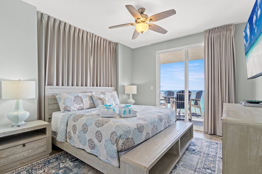 This is the best 2 bedroom floorplan in Splash, with 2 gulf-front king master bedrooms and a very large panoramic balcony!
