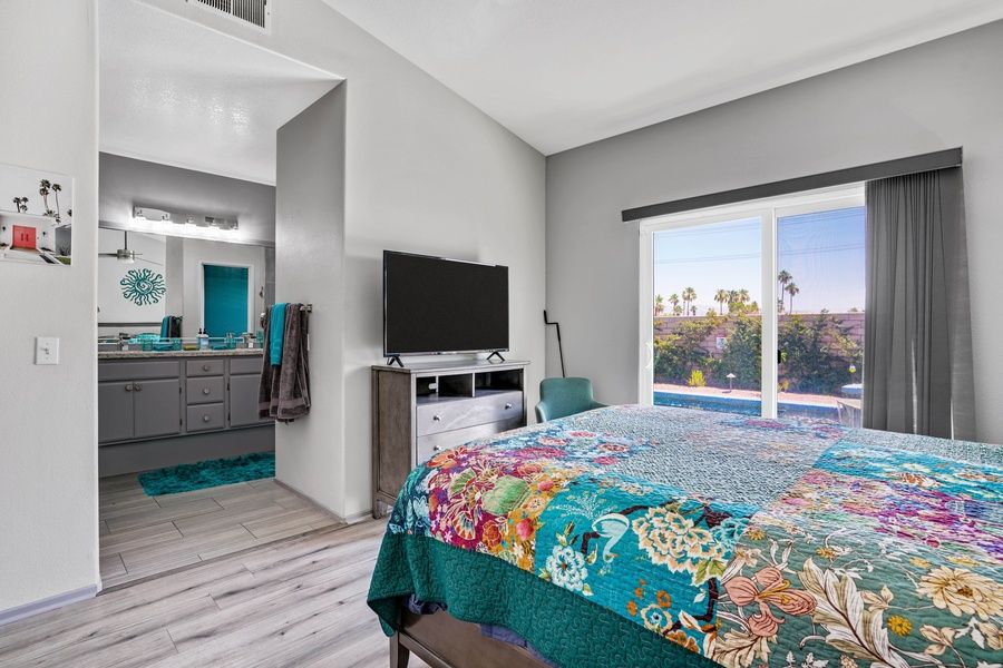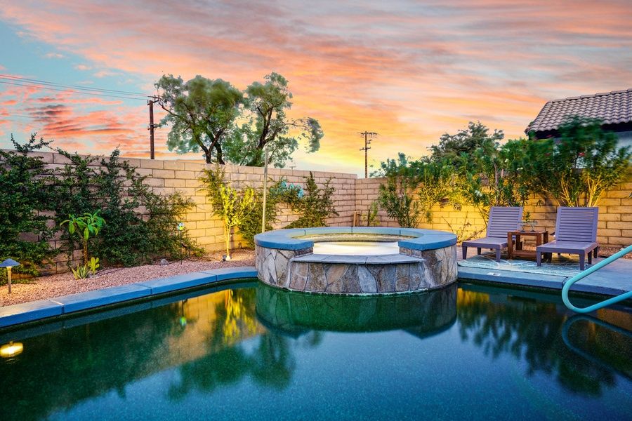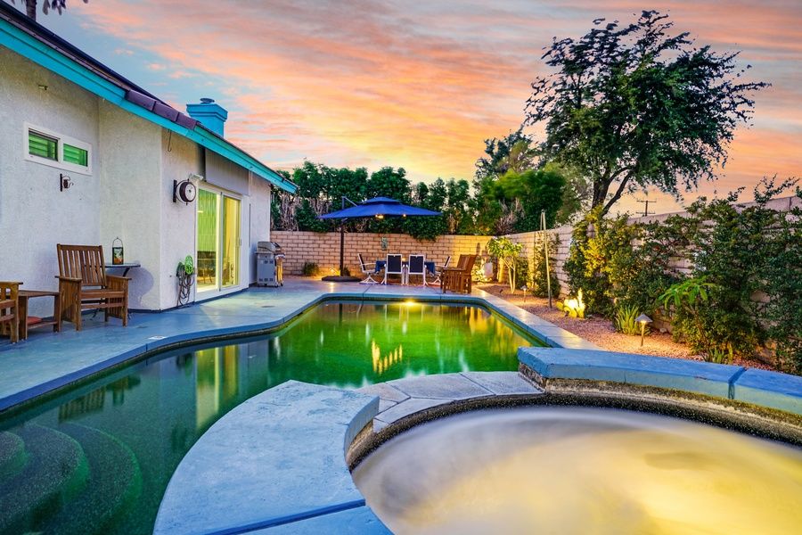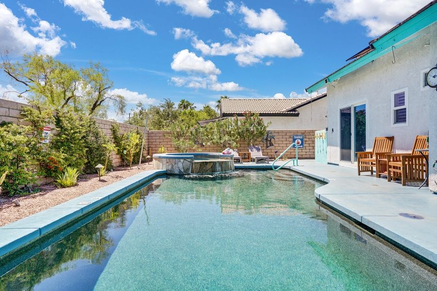 PS CITY ID #053518 Casa Solara is a quintessential Palm Springs retreat located in the desirable Flora Vista neighborhood of Vista Norte. This beautifully remodeled 3-bedroom, 2-bath home blends modern comfort with relaxed desert living, offering a private saltwater pool and spa, mountain views, and stylish interiors just minutes from downtown Palm Springs. Highlights • Private heated saltwater pool and spa • Stunning San Jacinto Mountain views • Fully remodeled kitchen and bathrooms • Solar-powered home for energy efficiency • Indoor-outdoor living with shaded lounge areas• Minutes from downtown Palm Springs The SpaceCasa Solara offers a bright, open layout designed for relaxed desert living. Natural light fills the main living area, creating a welcoming space to gather, unwind, or plan the day's adventures. The updated kitchen features quartz countertops, stainless steel appliances, and a five-burner gas range — fully equipped for everything from casual breakfasts to evening meals at home. Throughout the home, durable vinyl plank and ceramic tile flooring provide a clean, modern look while also being practical for guests and pets returning from pool time or desert outings. The remodeled bathrooms offer fresh quartz finishes, updated showers and tubs, and contemporary details that make it easy to refresh after a day in the sun. Sleeping Arrangements • Bedroom 1: Queen bed w/ en-suite bathroom and direct pool access • Bedroom 2: Queen bed • Bedroom 3: Double bed Outdoor Living The backyard is the true centerpiece of Casa Solara. Designed for both sun and shade, the outdoor space features a pebble-finish saltwater pool and spa system, multiple lounge areas, and several shade sails for comfort throughout the day. A large sun shade extends over the pool for added relief during warmer months. Spend mornings in the spa, afternoons lounging poolside, and evenings grilling and dining al fresco as the San Jacinto Mountains glow at sunset. With multiple seating zones and thoughtful landscaping, the yard adapts beautifully to every part of the day. Pool Ensure a comfortable swim with optional pool heating, available upon request at booking or prior to arrival. The pool is heated to 87º from 7:00 AM to 7:00 PM throughout your stay. Pool Heat Rates (per night): • November–March: USD75 • April, May, October: USD50 • Not needed in other months For stays under 7 nights, pool heat must be purchased for the entire stay. A 24-hour notice prior to arrival is required to ensure optimal warmth on your first night. Heating begins the day before arrival at no extra charge. Hot Tub Relax in the private saltwater spa, conveniently heated using easy controls. The hot tub is not pre-heated prior to arrival, but there is no additional charge to use it — even if pool heat is not selected. Simply activate it whenever you're ready to unwind. Location Located in the Flora Vista neighborhood of Vista Norte, Casa Solara offers a peaceful residential setting while remaining just minutes from downtown Palm Springs. Enjoy easy access to shopping, dining, nightlife, hiking trails, and world-class golf — all within a short drive. Summer Utility Surcharge For stays of 29 nights or longer between June 1st and September 31st, a USD750 per month utility surcharge will apply to help offset increased cooling costs during the summer months. This surcharge is not included at booking and will be requested prior to arrival. Dog-Friendly Stays Well-behaved dogs are welcome with prior approval. • Stays of 2–20 nights: USD89 per dog, per stay • Stays of 21 nights or more: USD200 per dog, per stay Guests are asked to promptly clean up after pets. Excessive pet damage may result in additional charges. Pets brought onto the property without prior approval will incur a USD500 fee. Please note: This home is not feline-friendly. Additional Policies & Rules To ensure a comfortable stay for all guests and neighbors, the following policies apply: • No outdoor music at any time; doors must remain closed if music is played indoors • Quiet hours are strictly enforced outdoors from 10:00 PM to 10:00 AM • No smoking inside the home • Primary renter must be 25 years of age or older • Guests are required to sign Ryson's Terms and Conditions, and City Ordinances require a copy of a valid ID to be provided prior to arrival Ryson Vacations has engaged VacayHome to ensure this listing contains all the information you need and that it is easy for you to book via search engines & online channels. VacayHome is connected directly to the property management system used by Ryson Vacations which ensures that availability & rates are up-to-date & accurate. When you book, VacayHome processes payment on behalf of Ryson Vacations and a charge will appear on your statement as "VacayHome". VacayHome will send you a confirmation e-mail that contains all the information you need to prepare for your vacation including arrival instructions. VacayHome has a 24 x 7 team to assist you with any questions or concerns you may have prior to arrival. To access VacayHome, obtain the customer support telephone number or read FAQs, please click on the links at the bottom of this page.