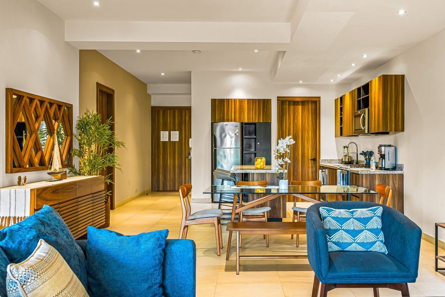 Welcome to your ideal retreat nestled in the heart of Nuevo Vallarta, one of the Riviera Nayarit's most sought-after neighborhoods. This modern, single-level condo offers the perfect blend of comfort, style, and convenience, with step-free access throughout—making it a welcoming destination for families, couples, and guests of all ages. The open-concept living space is designed for relaxation.