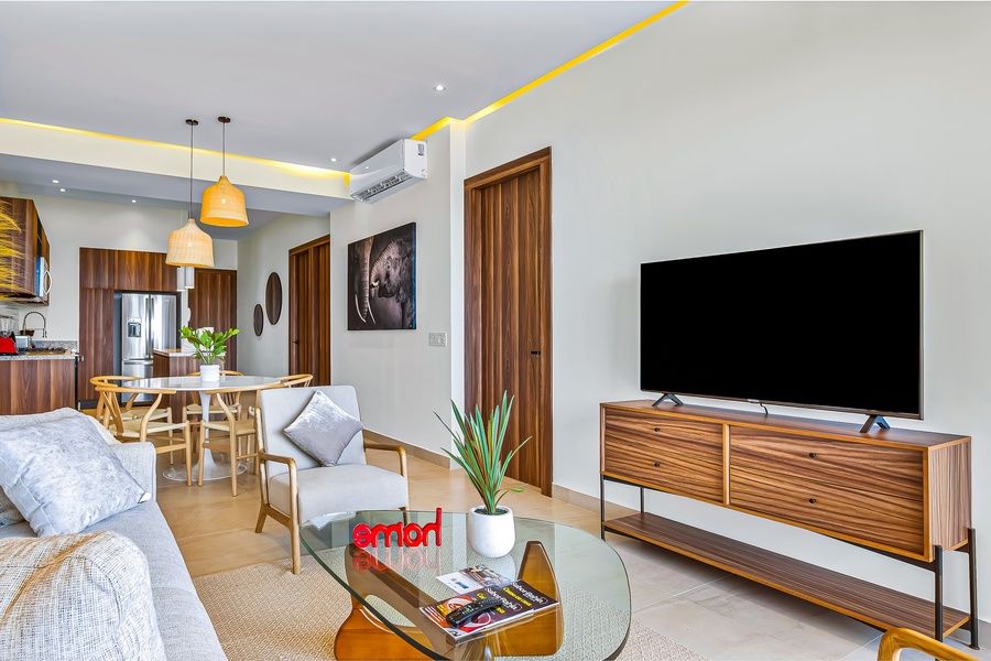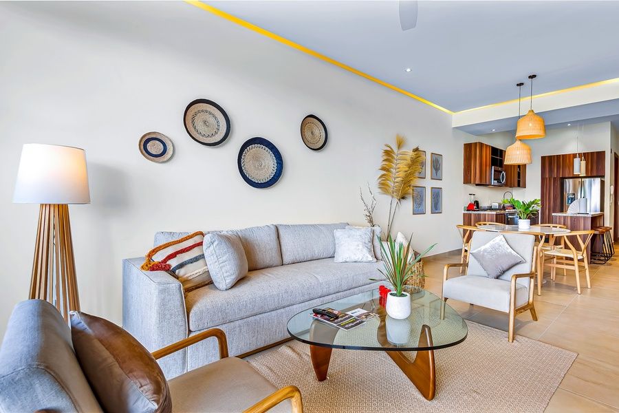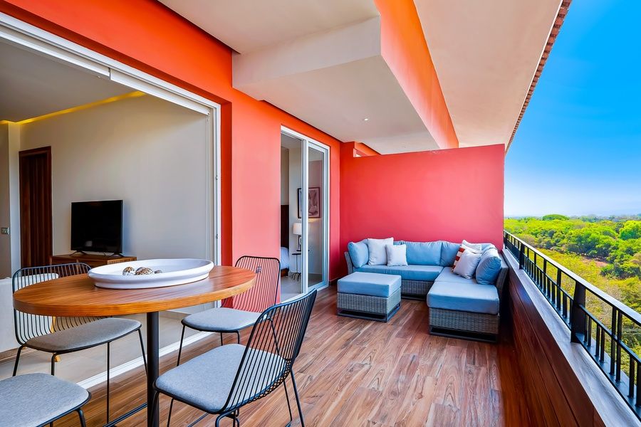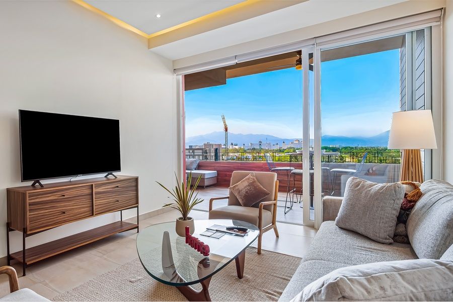 Proximity to the beach, destination golf at Vidanta, and on-site access to incredible amenities like a rooftop pool make this apartment an ideal choice for your next coastal getaway. The building's sprawling rooftop boasts a sparkling pool, sun decks, and a full-service restaurant. You'll also find a grocery store and plenty of great local dining options within walking distance. You'll be able to enjoy stellar sunrise and sunset vistas from the apartment's private balcony. Modern home furnishings and essentials like a full kitchen, air-conditioning, and a private washer ensure complete comfort when you're not out making the most of the coast. The apartment even includes upgraded, high-speed WiFi for remote working, streaming, or web browsing.