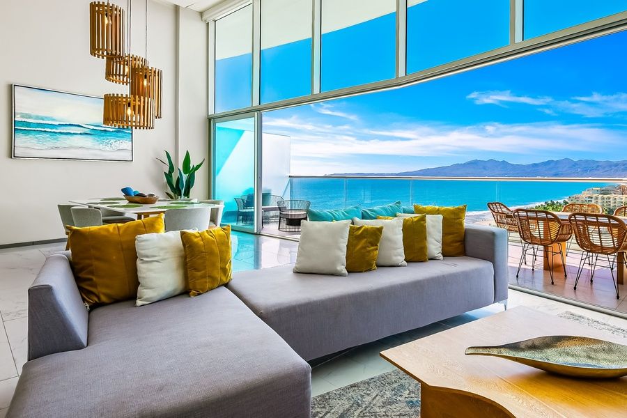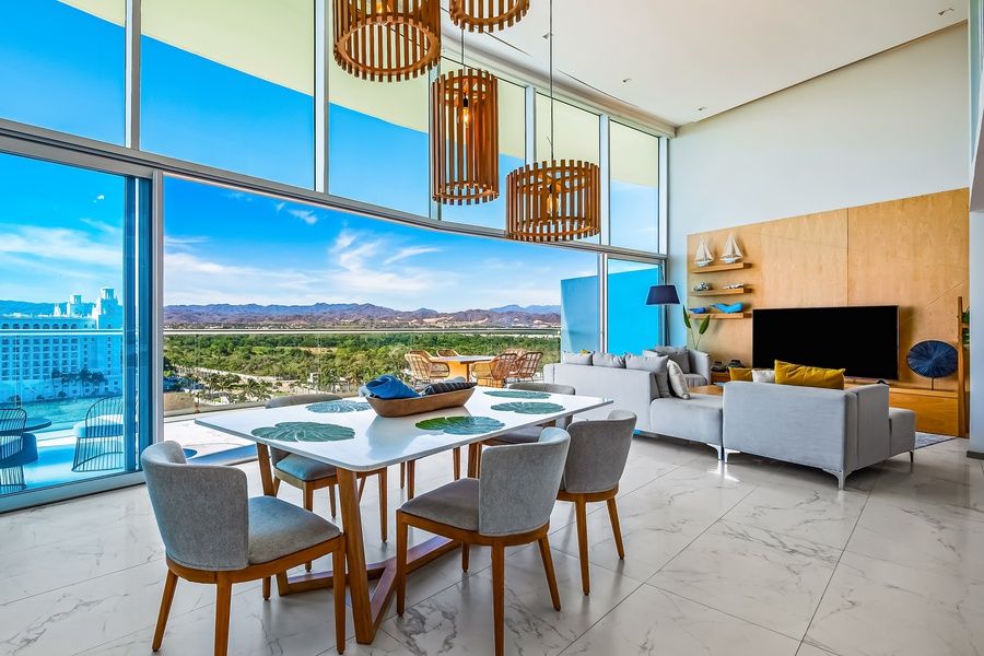 This luxurious oceanfront condo at Maritima is your ticket to carefree coastal living. Enter the immaculate space via a private elevator and step into a world of high-class elegance with top-of-the-line appliances, sleek modern design, and stylish decor providing all you need for beachside bliss. Walk mere steps to the private beach area or indulge in the resort amenities, such as the rooftop deck with two heated pools and a sky bar (available 12 p.m. - 9 p.m.), a terraced oceanfront pool and children's pool (unheated) plus lounge areas, a restaurant serving breakfast, lunch, and dinner 9 a.m. - 9 p.m., a fitness center, two padel courts, and an on-site spa (sauna and steam room are free of charge) available 10 a.m. - 5 p.m. The open-concept interior is filled with natural light and framed by beautiful views of the mountains and ocean. Settle in to stream shows and movies on the smart TV, or make your way out to the expansive balcony to bask in the ocean breezes. High-end stainless steel appliances ensure all your culinary needs are met in the mighty full kitchen. The renowned Flamingos Golf Resort is roughly a mile away, and the Puerto Vallarta International Airport is less than 10 miles away.