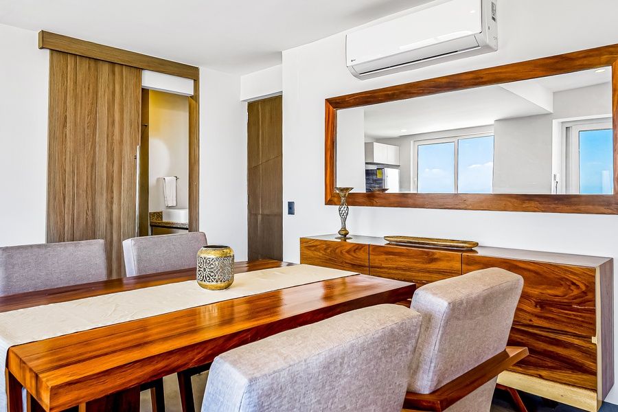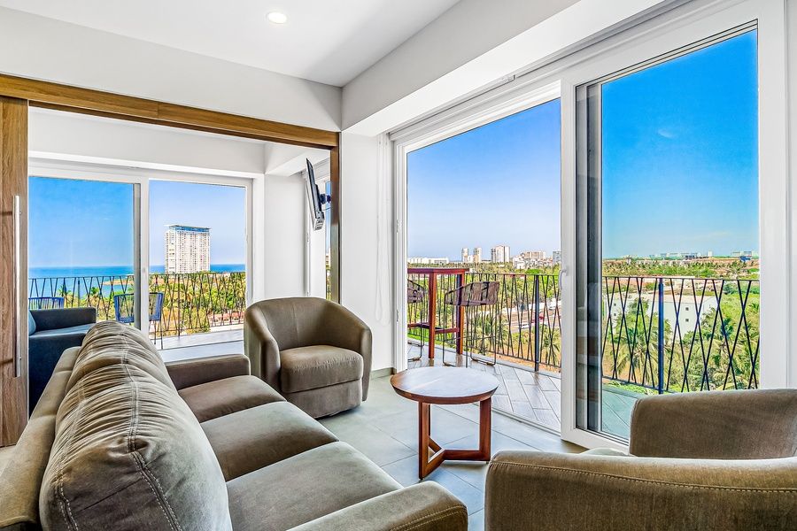 Conveniently located near the beach, the Galería shopping center, and a casino, this Puerto Vallarta condo is the picture of pure paradise! A true focal point of the retreat, step outside onto the private balcony where the sun shines effortlessly, cruise ships can be watched docking and departing from the pier, and the city views are impressive both night and day.